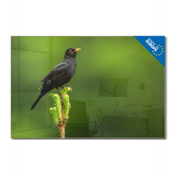 Glas Magnettafel im Querformat Motiv Vogel auf Tannenzweig