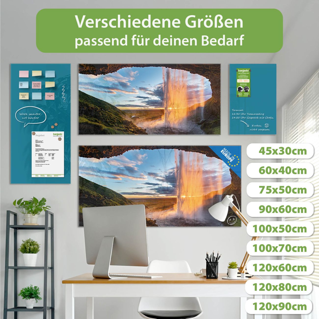 Ein Stück Design, das Ihren Alltag organisiert. Schreiben, heften, inspirieren - alles an einem Ort. Qualität, die man spürt. Montage leicht gemacht. Handwerk mit Herz - veredelt in Sachsen. Einzigartiges Design mit Motiv Motiv Wasserfall im Sonnenlicht Beschreibbare Glasoberfläche, leicht zu reinigen Starke Magnetkraft durch Stahlrückwand Inklusive 4 Neodym-Magneten Flexible Montageoptionen Handveredelt in Sachsen - Qualität, die bleibt