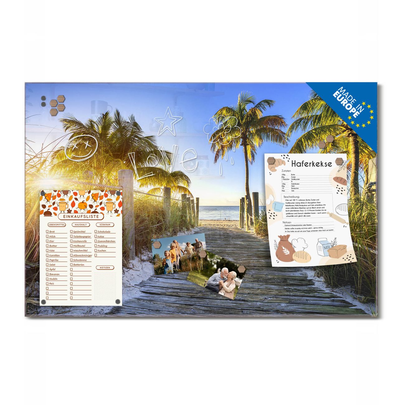 Ein Stück Design, das Ihren Alltag organisiert. Schreiben, heften, inspirieren - alles an einem Ort. Qualität, die man spürt. Montage leicht gemacht. Handwerk mit Herz - veredelt in Sachsen. Einzigartiges Design mit Motiv Motiv Weg zum Strand Beschreibbare Glasoberfläche, leicht zu reinigen Starke Magnetkraft durch Stahlrückwand Inklusive 4 Neodym-Magneten Flexible Montageoptionen Handveredelt in Sachsen - Qualität, die bleibt