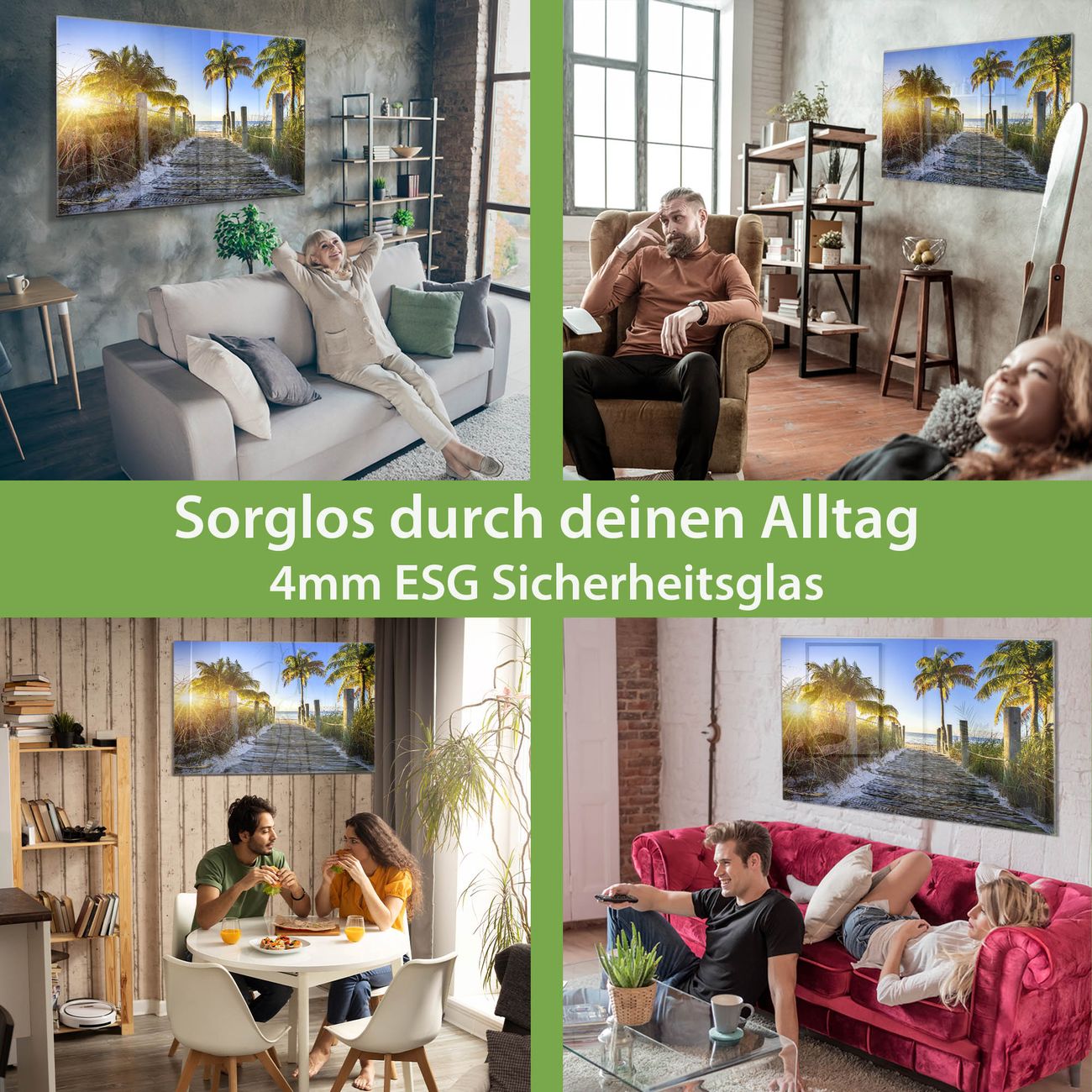 - Material: 4mm Sicherheitsglas mit Metallrückwand