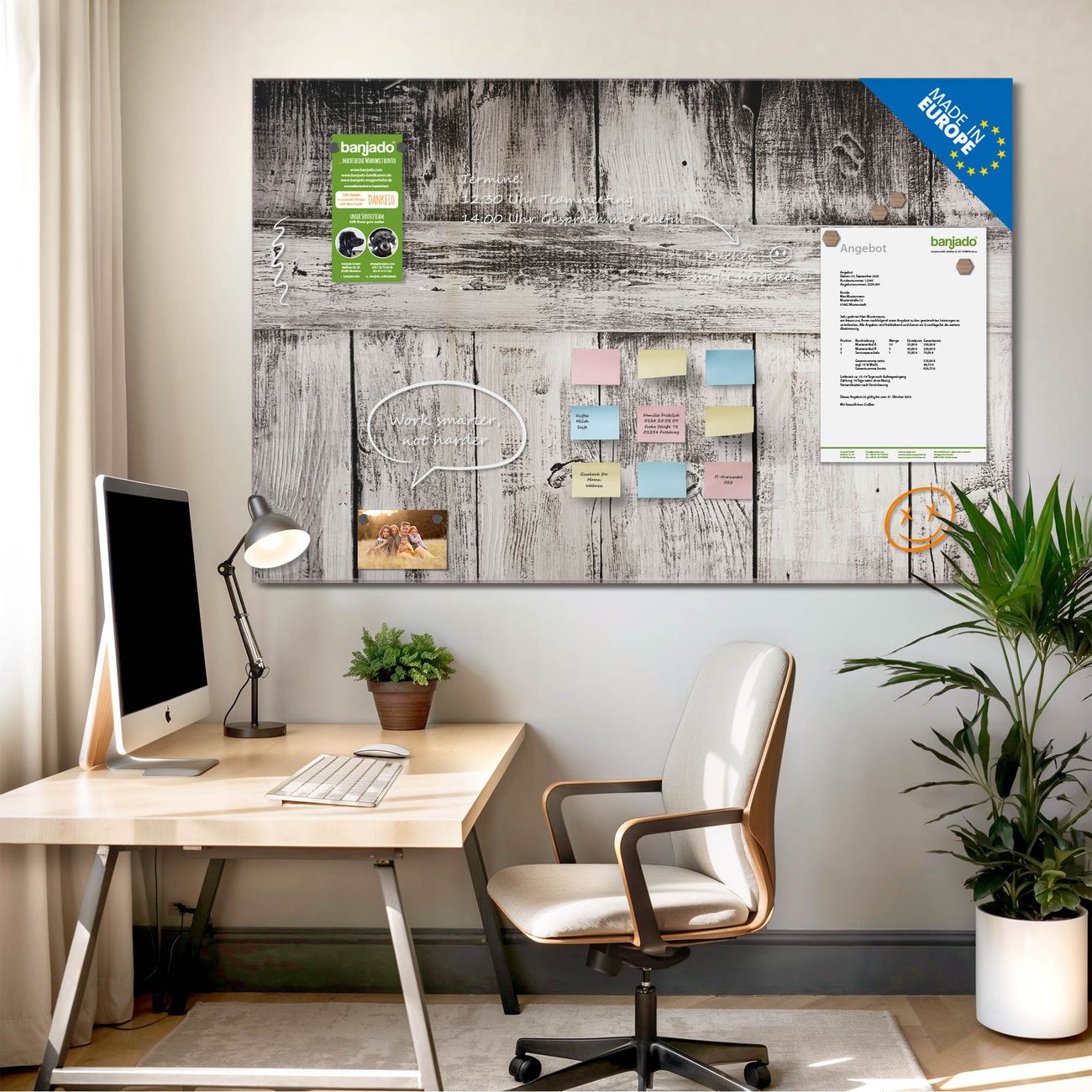Jede Glas Magnettafel wird in unserer Werkstatt von Hand gefertigt und sorgfältig geprüft. So erhalten Sie ein echtes Qualitätsprodukt, das Funktion und Ästhetik perfekt vereint.?? Warum banjado?