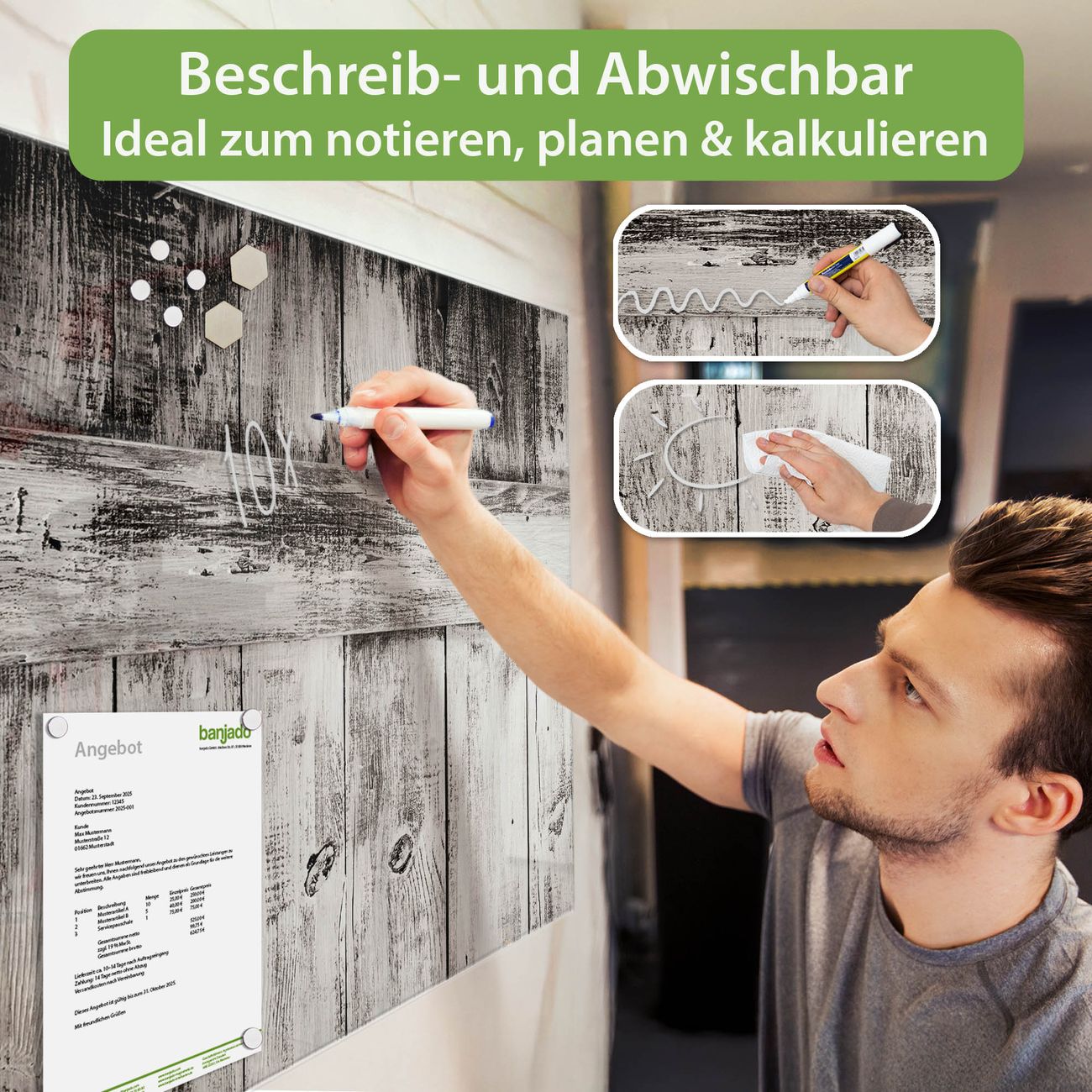 Bitte beachten Sie, dass ausschliessliche spezielle Magnete an der Glastafel haften. Wir empfehlen banjado Neodym Magnete, diese sind durch uns auf Wirksamkeit geprüft.