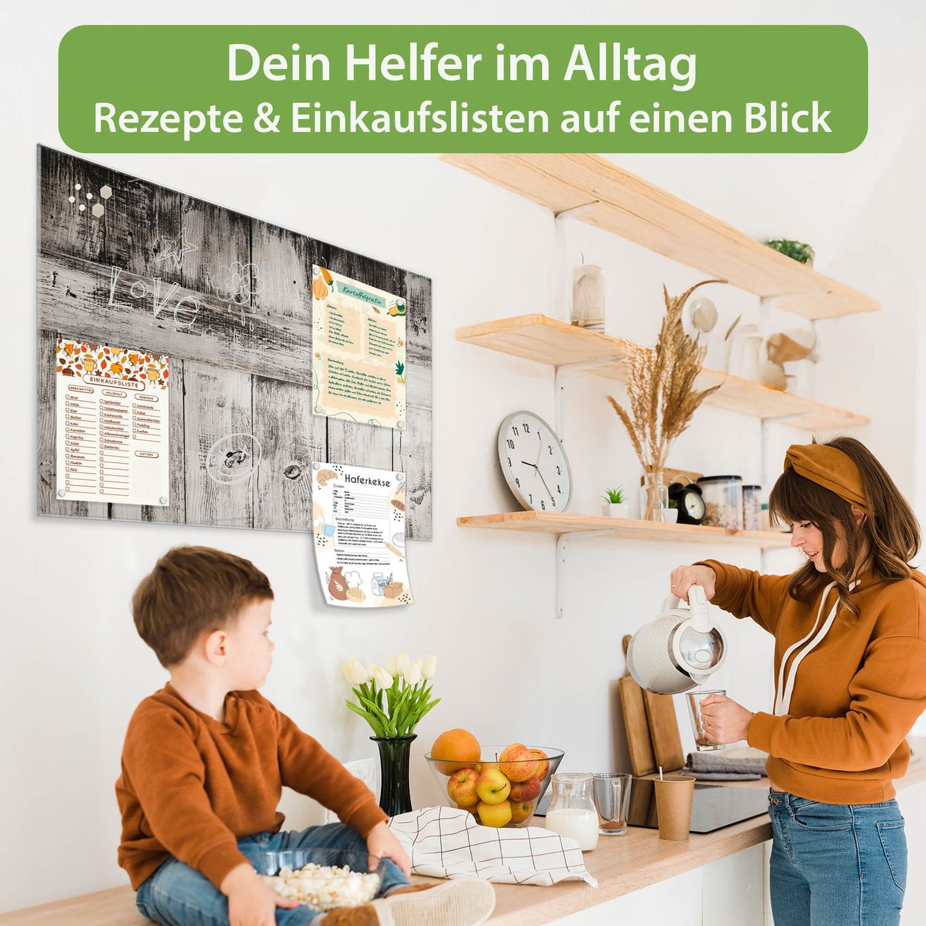 Auf der glatten Glasoberfläche lassen sich Termine, Rezepte oder Notizen ganz einfach mit Kreidestiften festhalten und rückstandslos entfernen. Starke Neodym-Magnete halten Ihre wichtigsten Erinnerungen sicher an Ort und Stelle. So entsteht Ihre ganz persönliche Ideenwand - jeden Tag neu.