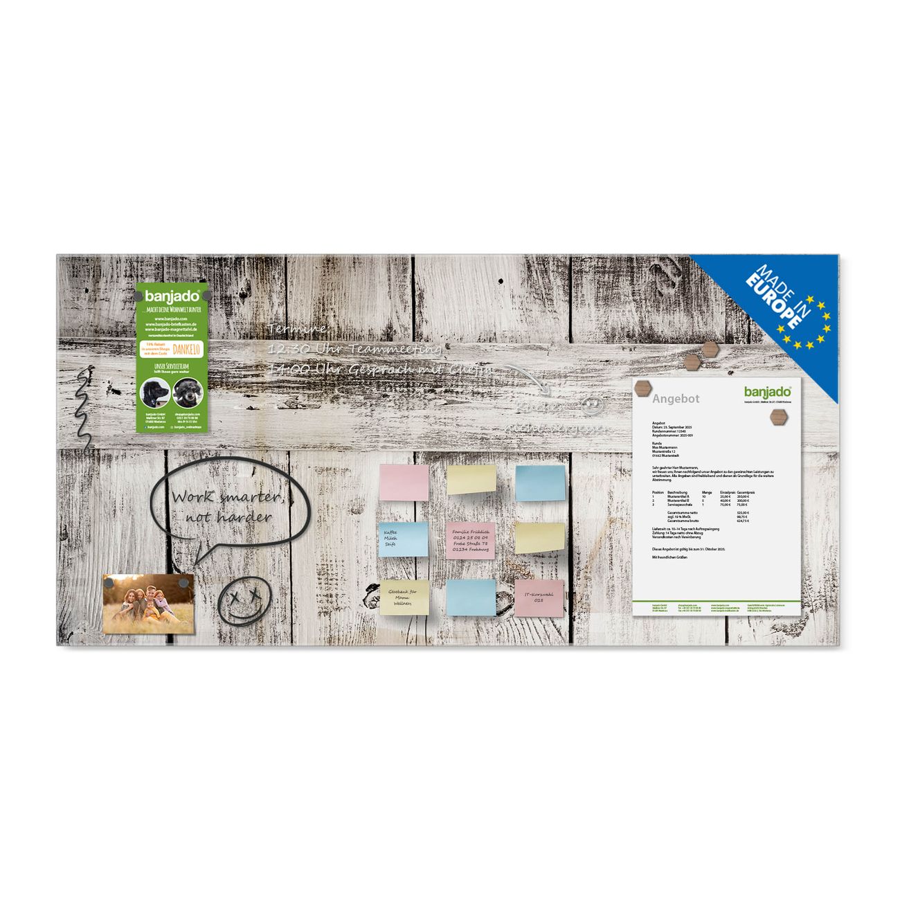 Glas Magnettafel im Querformat Motiv weiße Bretter