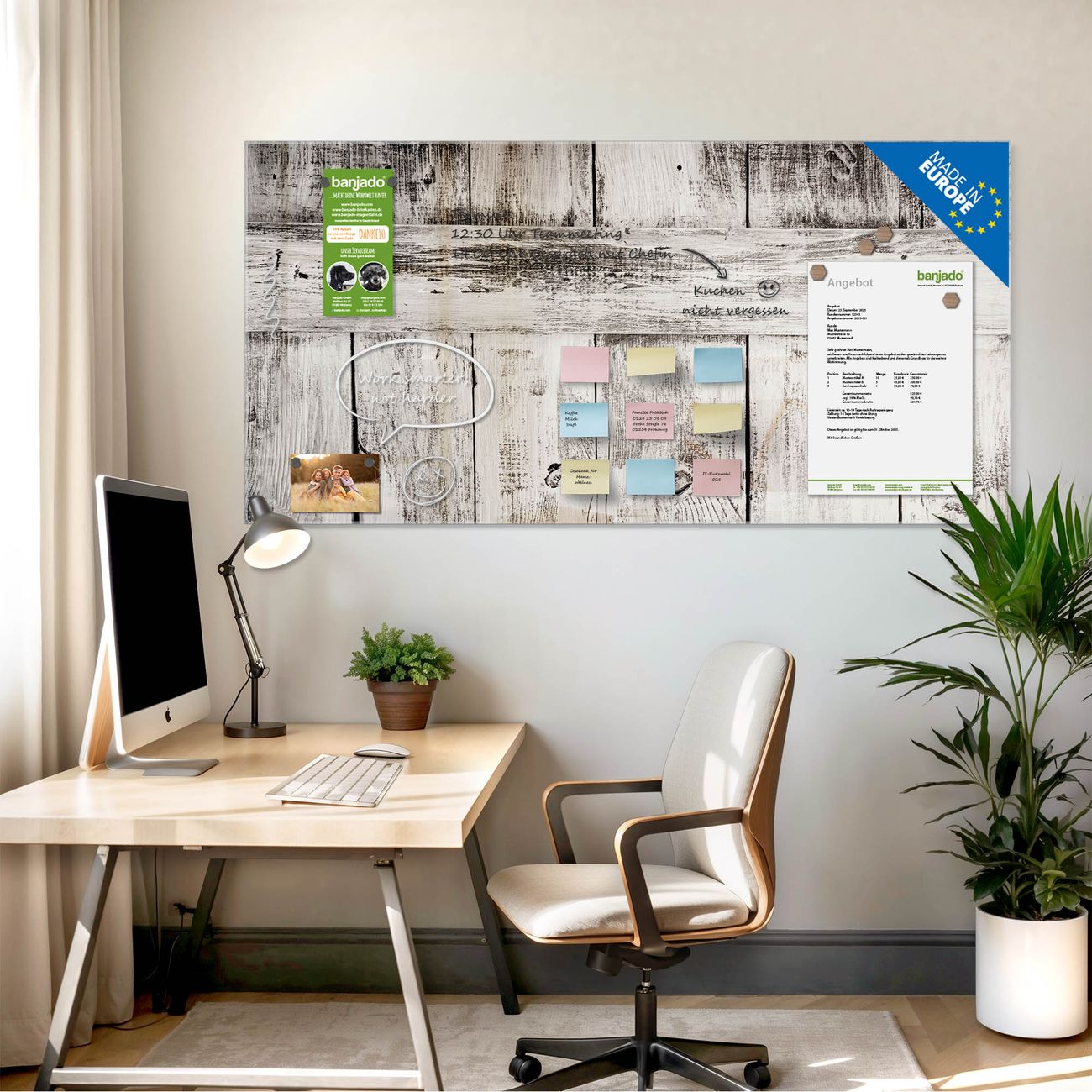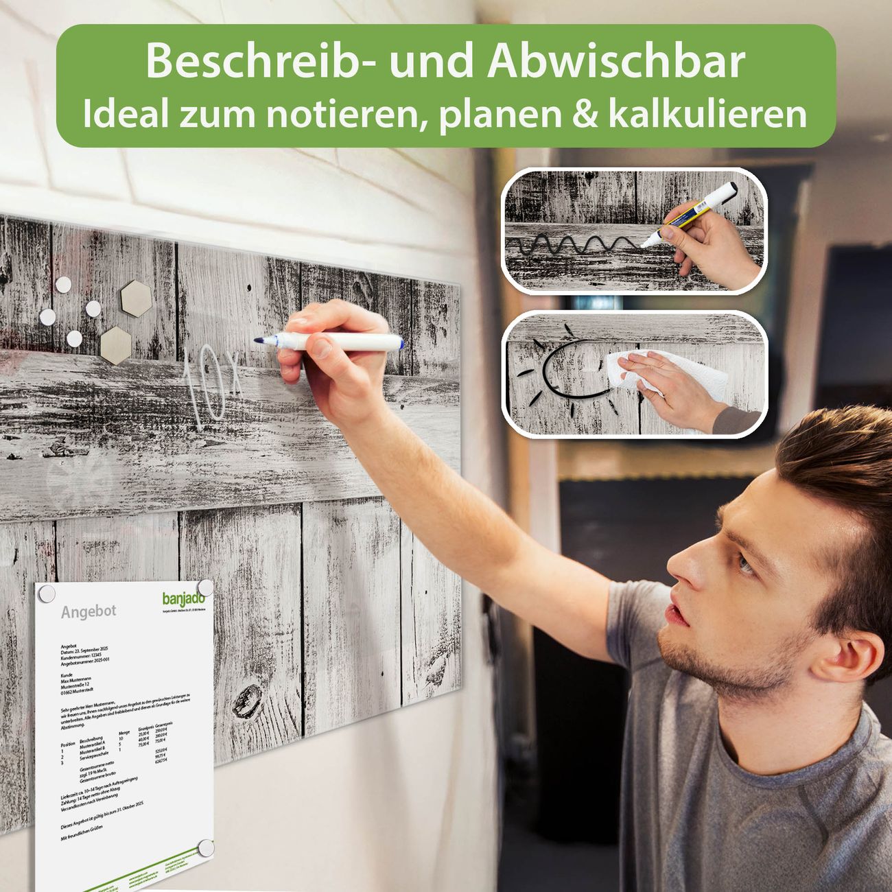 Die banjado Glas Magnettafel mit dem Motiv Motiv weiße Bretter verbindet Funktionalität mit Stil. Sie ersetzt das Zettelchaos durch klare Strukturen und bringt dabei eine warme, natürliche Atmosphäre in Ihr Zuhause. Ob im Büro, in der Küche oder im Eingangsbereich - dieses Design-Board zieht Blicke an und sorgt für Ordnung mit Charakter.