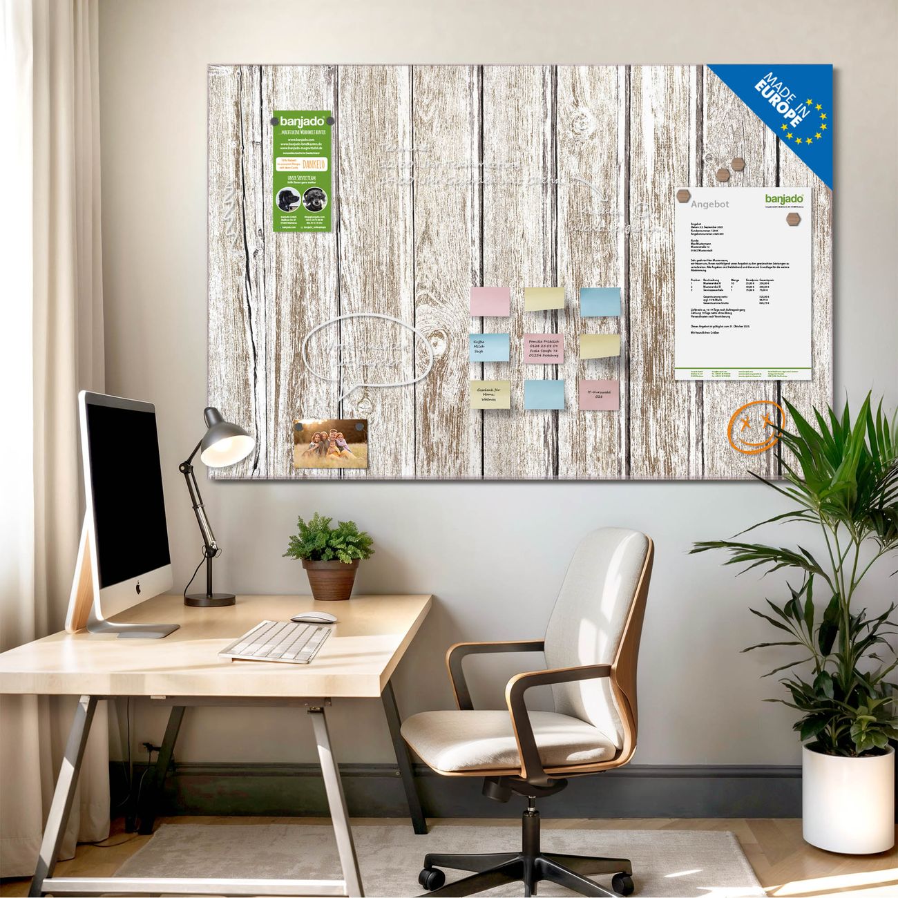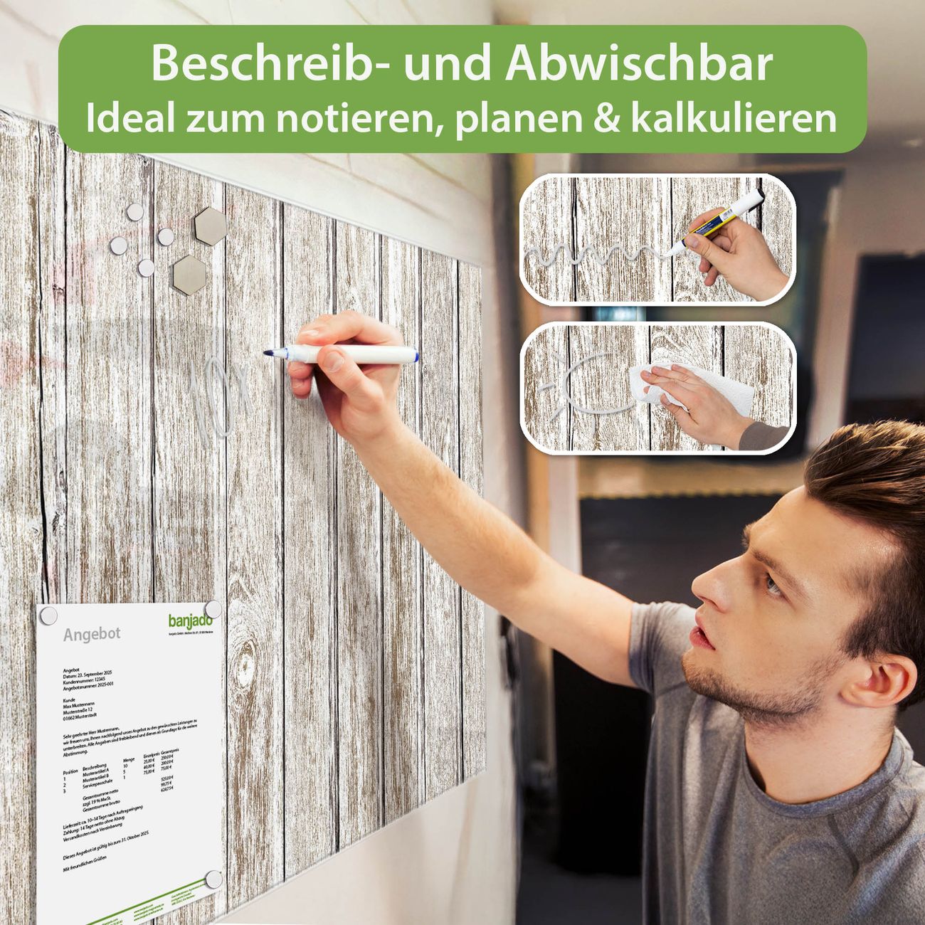 Glas Magnettafel im Querformat Motiv Weißes Holz