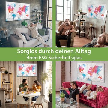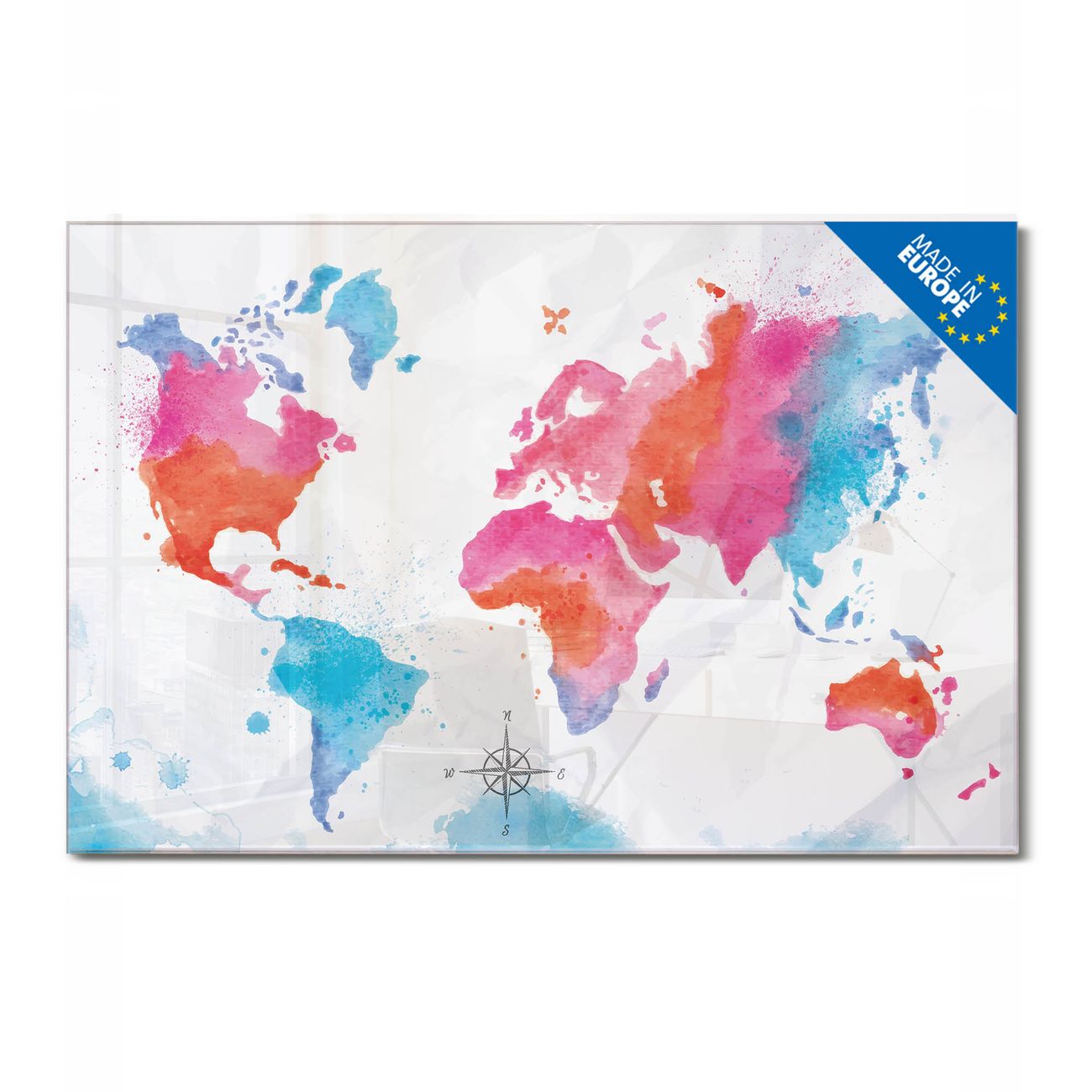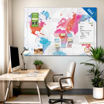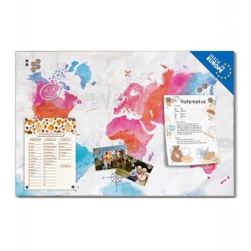 Glas Magnettafel im Querformat Motiv Weltkarte pastell