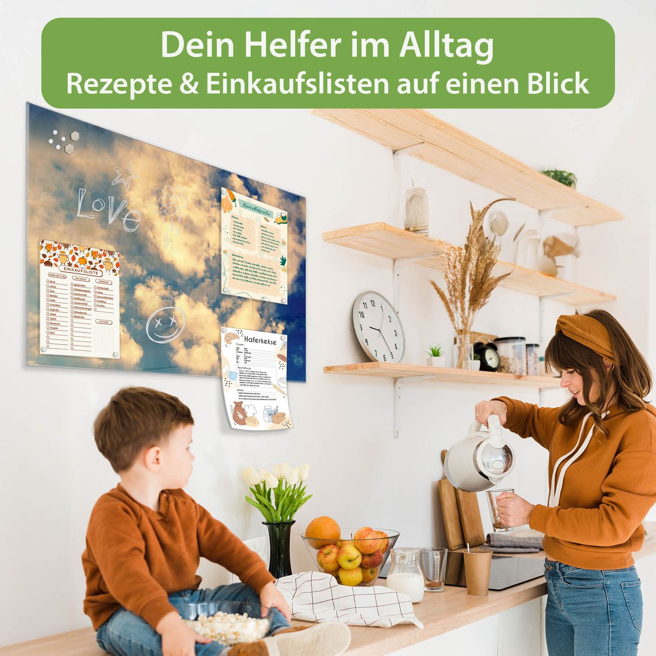 Ein Stück Design, das Ihren Alltag organisiert. Schreiben, heften, inspirieren - alles an einem Ort. Qualität, die man spürt. Montage leicht gemacht. Handwerk mit Herz - veredelt in Sachsen. Einzigartiges Design mit Motiv Motiv Wolken 3 Beschreibbare Glasoberfläche, leicht zu reinigen Starke Magnetkraft durch Stahlrückwand Inklusive 4 Neodym-Magneten Flexible Montageoptionen Handveredelt in Sachsen - Qualität, die bleibt