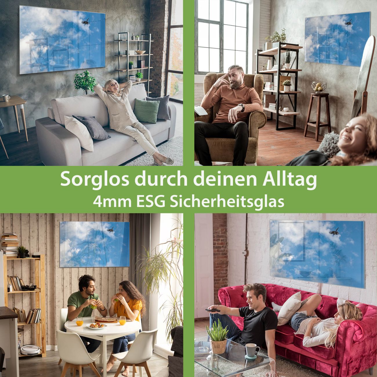 - Material: 4mm Sicherheitsglas mit Metallrückwand