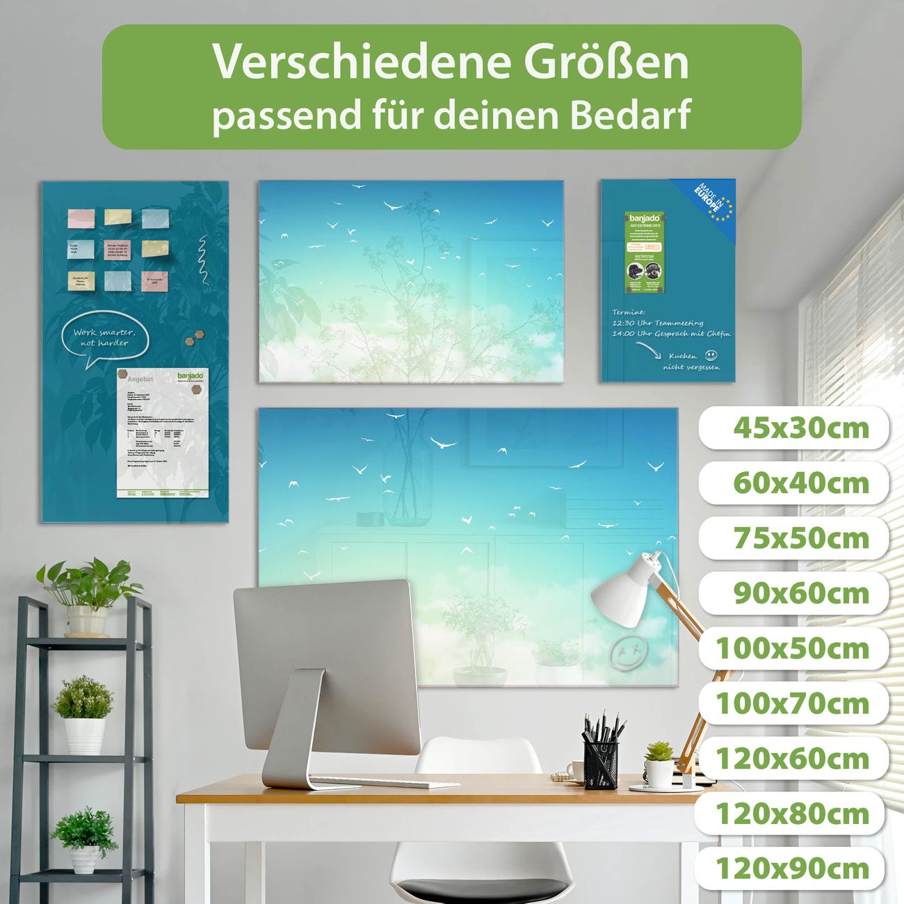Jede Glas Magnettafel wird in unserer Werkstatt von Hand gefertigt und sorgfältig geprüft. So erhalten Sie ein echtes Qualitätsprodukt, das Funktion und Ästhetik perfekt vereint.?? Warum banjado?