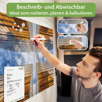 Die banjado Glas Magnettafel mit dem Motiv Motiv Wolkenkratzer 2 verbindet Funktionalität mit Stil. Sie ersetzt das Zettelchaos durch klare Strukturen und bringt dabei eine warme, natürliche Atmosphäre in Ihr Zuhause. Ob im Büro, in der Küche oder im Eingangsbereich - dieses Design-Board zieht Blicke an und sorgt für Ordnung mit Charakter.