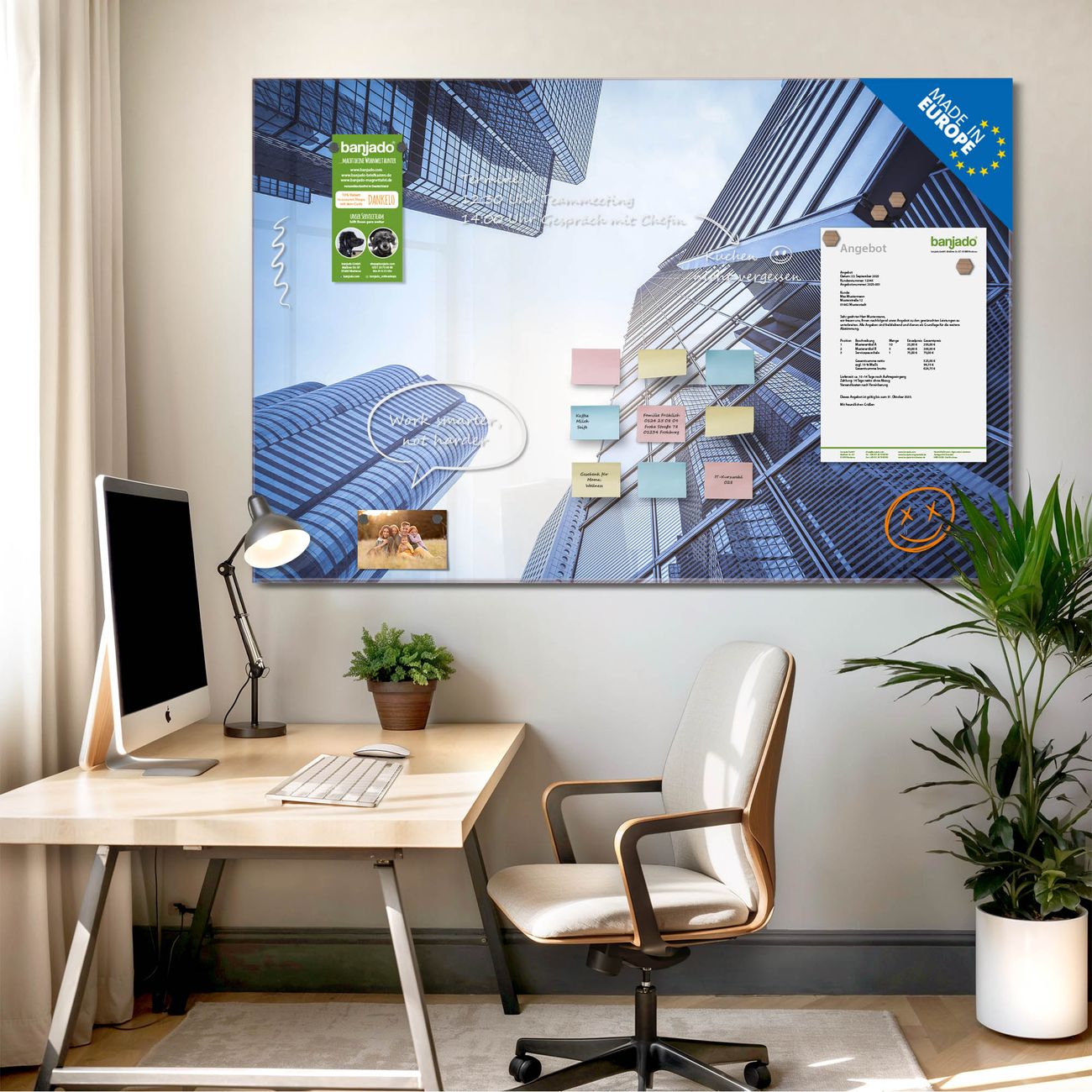 Glas Magnettafel im Querformat Motiv Wolkenkratzer