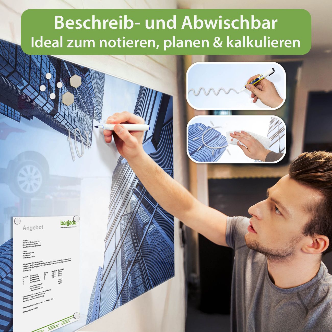 Jede Glas Magnettafel wird in unserer Werkstatt von Hand gefertigt und sorgfältig geprüft. So erhalten Sie ein echtes Qualitätsprodukt, das Funktion und Ästhetik perfekt vereint.?? Warum banjado?