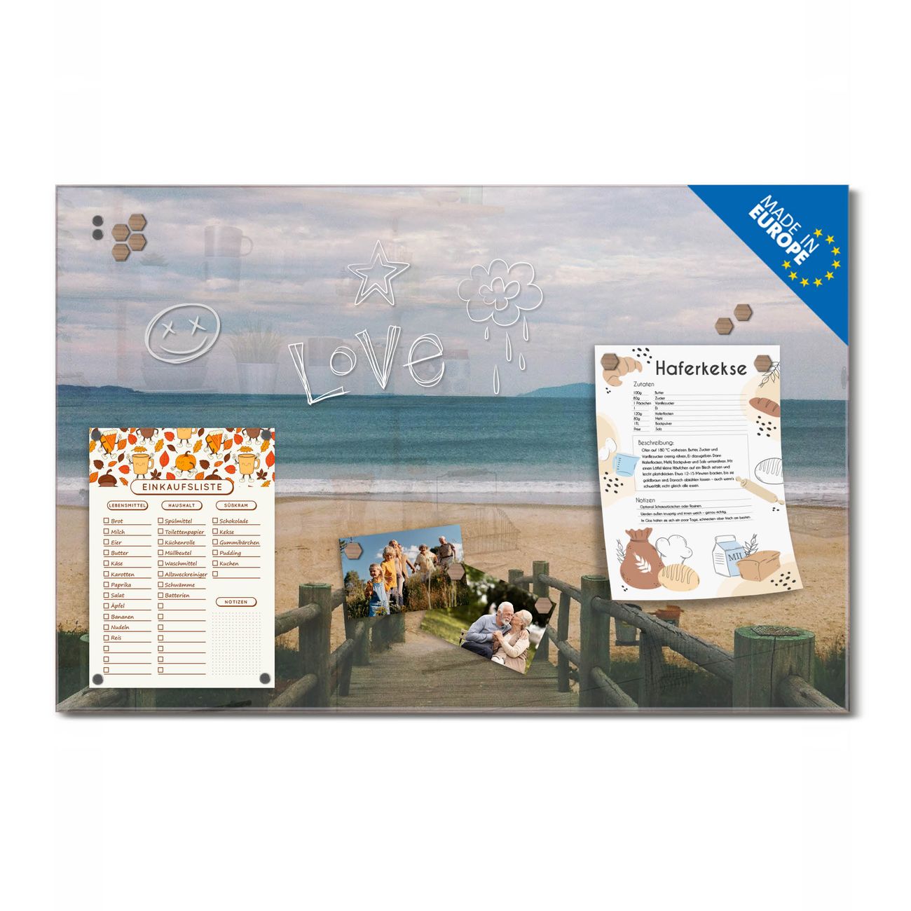 Ein Stück Design, das Ihren Alltag organisiert. Schreiben, heften, inspirieren - alles an einem Ort. Qualität, die man spürt. Montage leicht gemacht. Handwerk mit Herz - veredelt in Sachsen. Einzigartiges Design mit Motiv Motiv Zum Strand Beschreibbare Glasoberfläche, leicht zu reinigen Starke Magnetkraft durch Stahlrückwand Inklusive 4 Neodym-Magneten Flexible Montageoptionen Handveredelt in Sachsen - Qualität, die bleibt