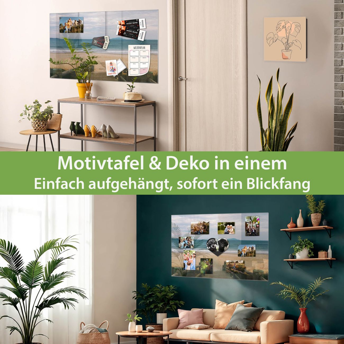 Dank der flachen Bauweise wirkt die Magnetwand fast schwebend an der Wand. Sie können sie mit Montagekleber elegant befestigen oder mit einem passenden Set klassisch verschrauben - beides sorgt für sicheren Halt und eine dezente Optik.