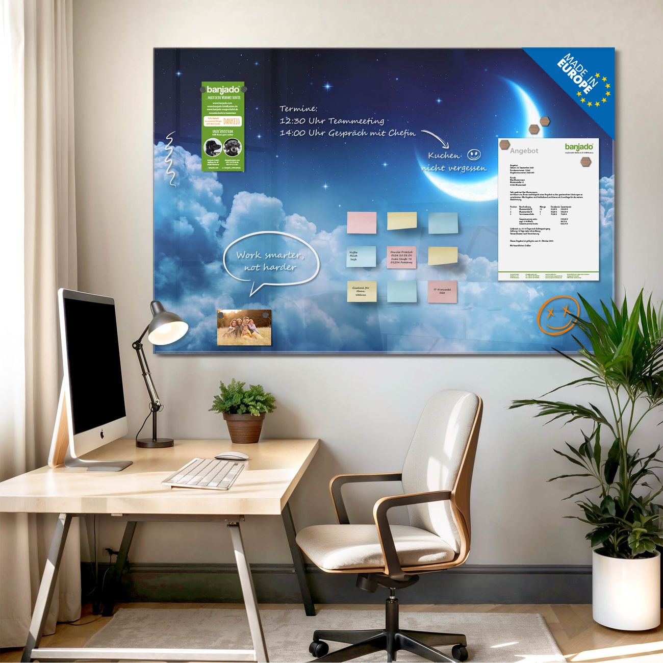 Glas Magnettafel im Querformat Motiv zunehmender Mond