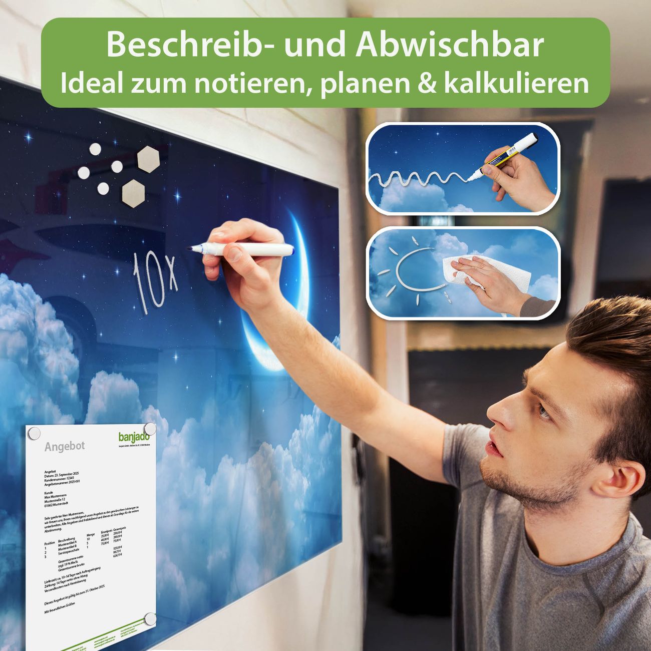 Die banjado Glas Magnettafel mit dem Motiv Motiv zunehmender Mond verbindet Funktionalität mit Stil. Sie ersetzt das Zettelchaos durch klare Strukturen und bringt dabei eine warme, natürliche Atmosphäre in Ihr Zuhause. Ob im Büro, in der Küche oder im Eingangsbereich - dieses Design-Board zieht Blicke an und sorgt für Ordnung mit Charakter.