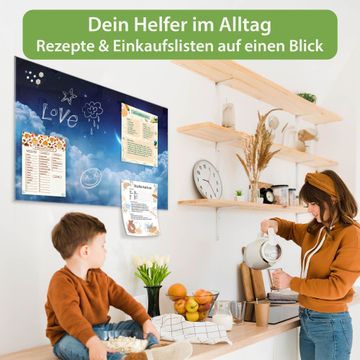 Auf der glatten Glasoberfläche lassen sich Termine, Rezepte oder Notizen ganz einfach mit Kreidestiften festhalten und rückstandslos entfernen. Starke Neodym-Magnete halten Ihre wichtigsten Erinnerungen sicher an Ort und Stelle. So entsteht Ihre ganz persönliche Ideenwand - jeden Tag neu.