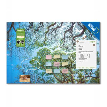 Die banjado Glas Magnettafel mit dem Motiv Motiv Zwischen Bäumen 2 verbindet Funktionalität mit Stil. Sie ersetzt das Zettelchaos durch klare Strukturen und bringt dabei eine warme, natürliche Atmosphäre in Ihr Zuhause. Ob im Büro, in der Küche oder im Eingangsbereich - dieses Design-Board zieht Blicke an und sorgt für Ordnung mit Charakter.