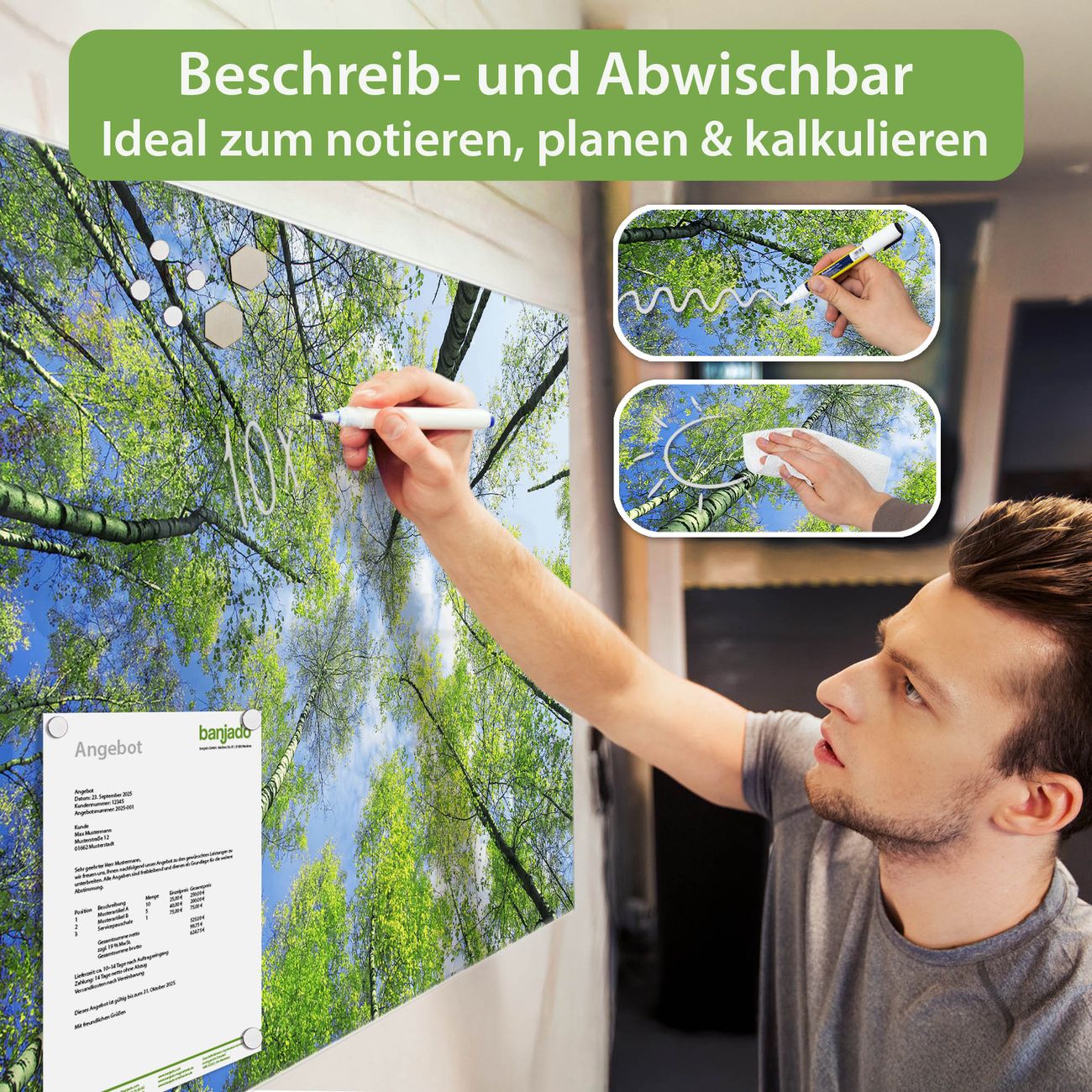 Die banjado Glas Magnettafel mit dem Motiv Motiv Zwischen Bäumen 3 verbindet Funktionalität mit Stil. Sie ersetzt das Zettelchaos durch klare Strukturen und bringt dabei eine warme, natürliche Atmosphäre in Ihr Zuhause. Ob im Büro, in der Küche oder im Eingangsbereich - dieses Design-Board zieht Blicke an und sorgt für Ordnung mit Charakter.