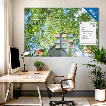 Die banjado Glas Magnettafel mit dem Motiv Motiv Zwischen Bäumen 5 verbindet Funktionalität mit Stil. Sie ersetzt das Zettelchaos durch klare Strukturen und bringt dabei eine warme, natürliche Atmosphäre in Ihr Zuhause. Ob im Büro, in der Küche oder im Eingangsbereich - dieses Design-Board zieht Blicke an und sorgt für Ordnung mit Charakter.