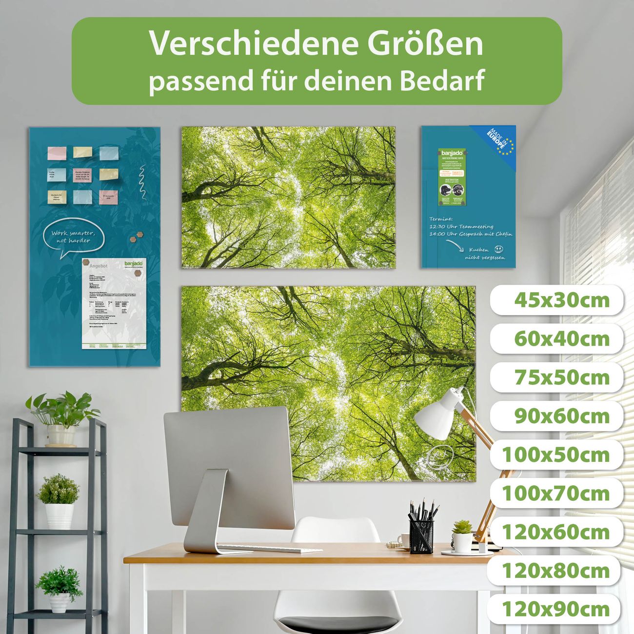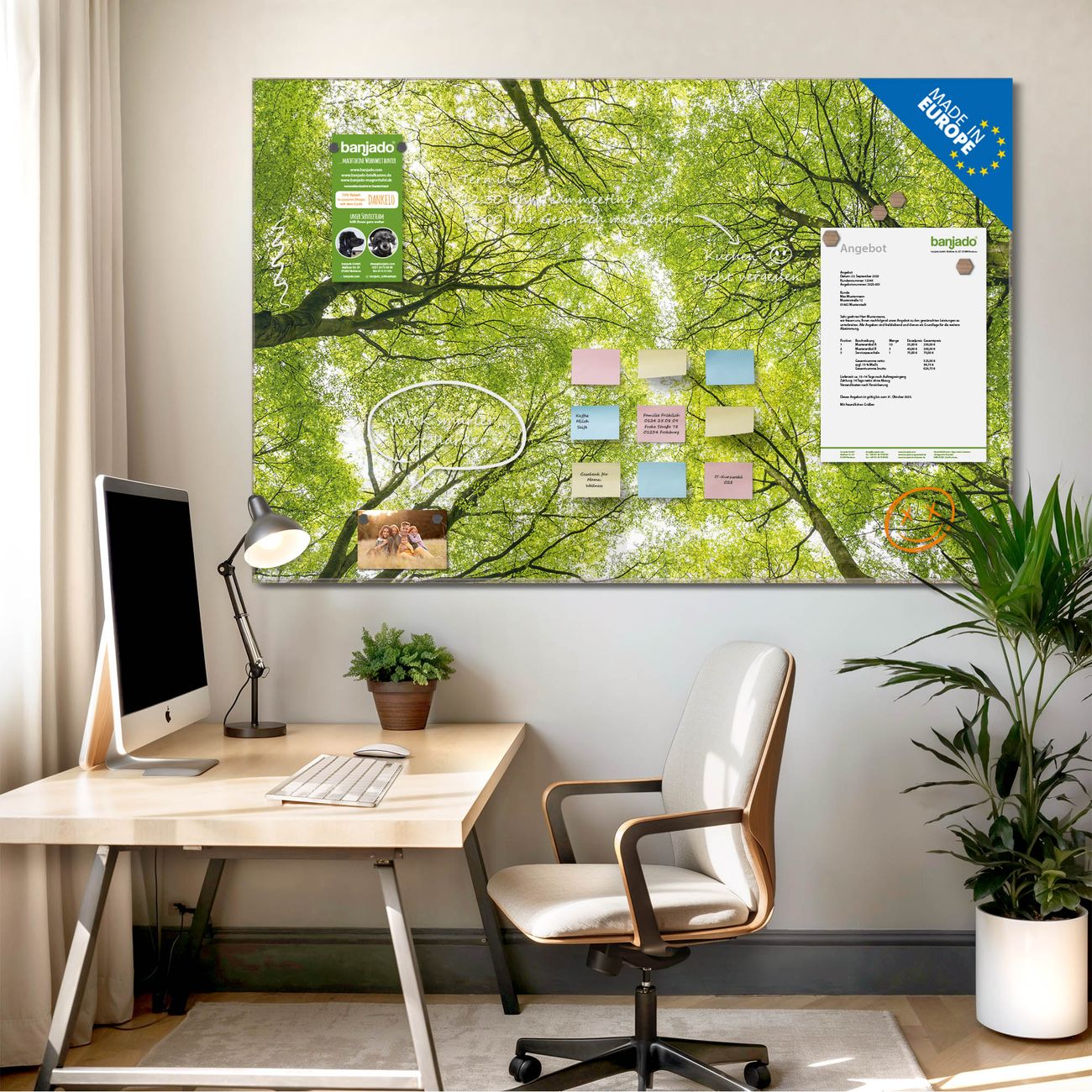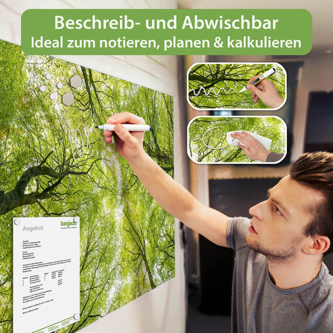 Jede Glas Magnettafel wird in unserer Werkstatt von Hand gefertigt und sorgfältig geprüft. So erhalten Sie ein echtes Qualitätsprodukt, das Funktion und Ästhetik perfekt vereint.?? Warum banjado?