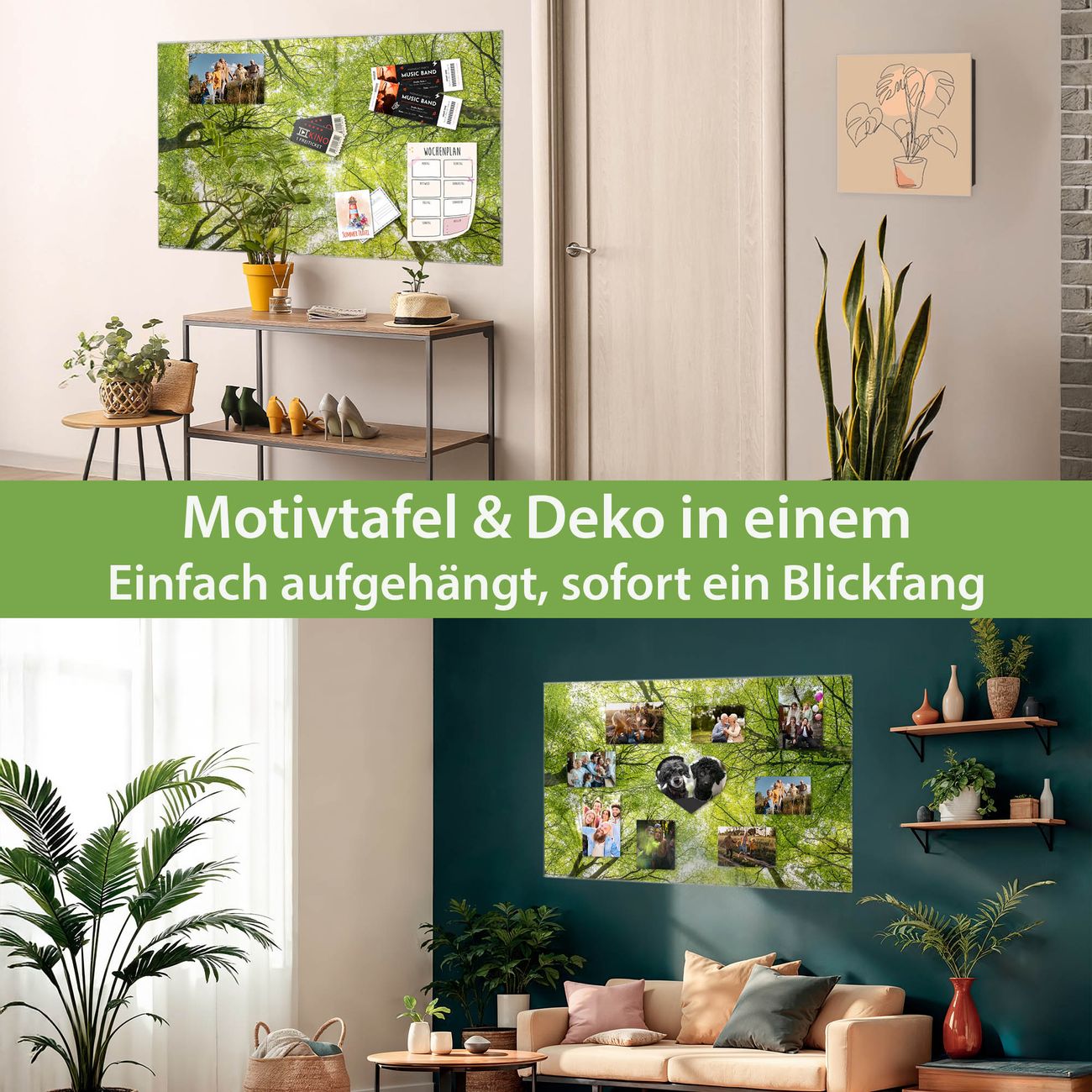Die banjado Glas Magnettafel mit dem Motiv Motiv Zwischen Bäumen verbindet Funktionalität mit Stil. Sie ersetzt das Zettelchaos durch klare Strukturen und bringt dabei eine warme, natürliche Atmosphäre in Ihr Zuhause. Ob im Büro, in der Küche oder im Eingangsbereich - dieses Design-Board zieht Blicke an und sorgt für Ordnung mit Charakter.