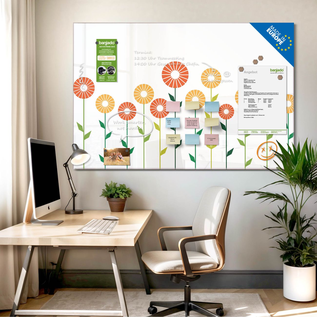 Glas Magnettafel im Querformat Motiv Abstrakte Margeriten