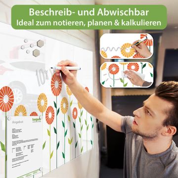 Die banjado Glas Magnettafel mit dem Motiv Motiv Abstrakte Margeriten verbindet Funktionalität mit Stil. Sie ersetzt das Zettelchaos durch klare Strukturen und bringt dabei eine warme, natürliche Atmosphäre in Ihr Zuhause. Ob im Büro, in der Küche oder im Eingangsbereich - dieses Design-Board zieht Blicke an und sorgt für Ordnung mit Charakter.