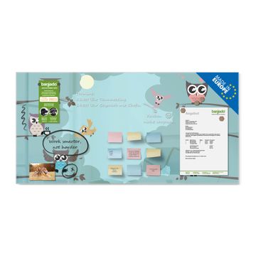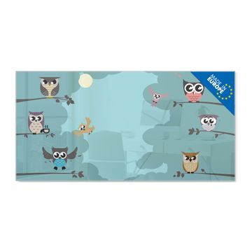 Glas Magnettafel im Querformat Motiv Acht Eulen