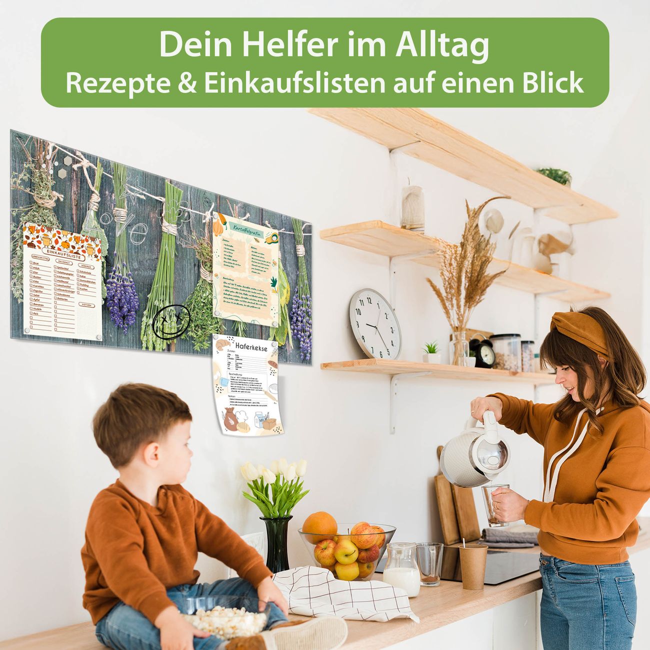 Ein Stück Design, das Ihren Alltag organisiert. Schreiben, heften, inspirieren - alles an einem Ort. Qualität, die man spürt. Montage leicht gemacht. Handwerk mit Herz - veredelt in Sachsen. Einzigartiges Design mit Motiv Motiv Acht Kräuter Beschreibbare Glasoberfläche, leicht zu reinigen Starke Magnetkraft durch Stahlrückwand Inklusive 4 Neodym-Magneten Flexible Montageoptionen Handveredelt in Sachsen - Qualität, die bleibt