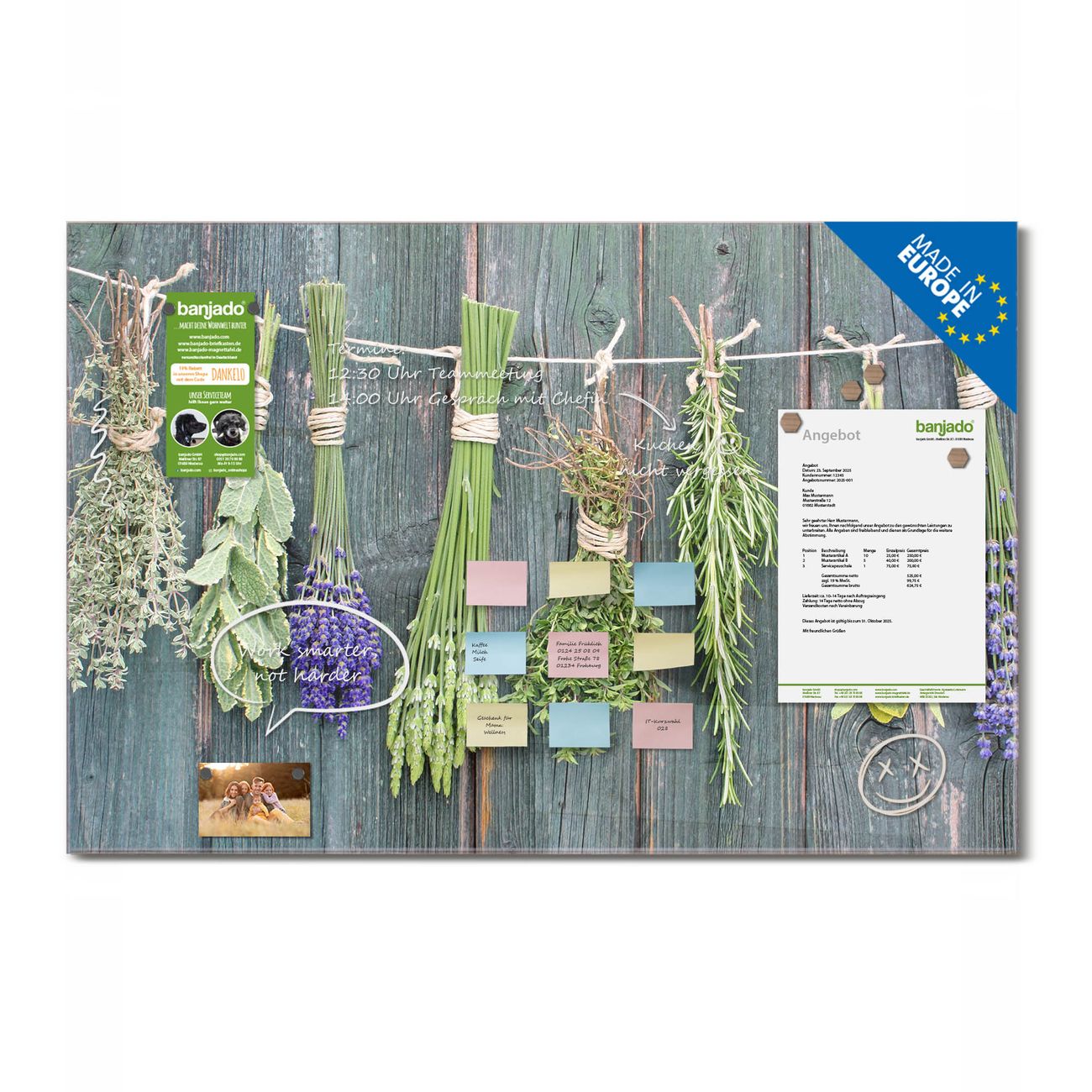 Glas Magnettafel im Querformat Motiv Acht Kräuter
