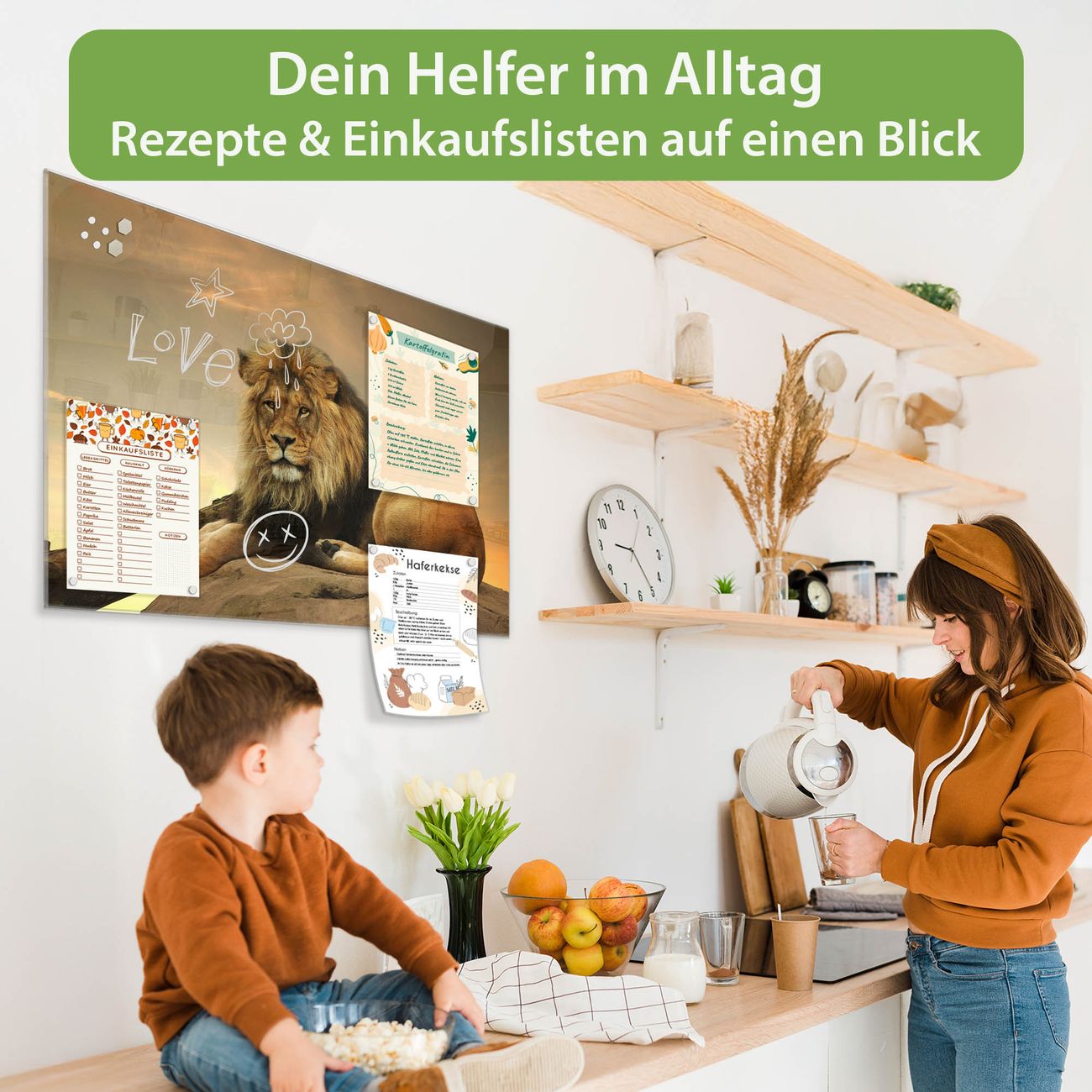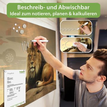 Auf der glatten Glasoberfläche lassen sich Termine, Rezepte oder Notizen ganz einfach mit Kreidestiften festhalten und rückstandslos entfernen. Starke Neodym-Magnete halten Ihre wichtigsten Erinnerungen sicher an Ort und Stelle. So entsteht Ihre ganz persönliche Ideenwand - jeden Tag neu.