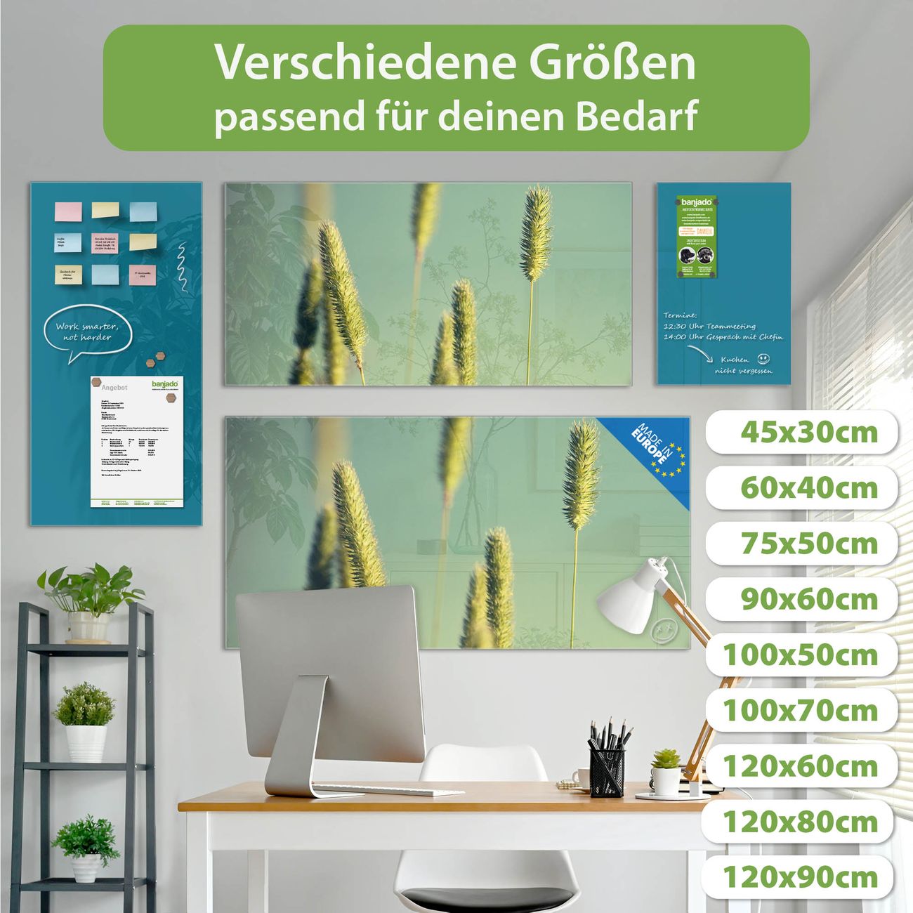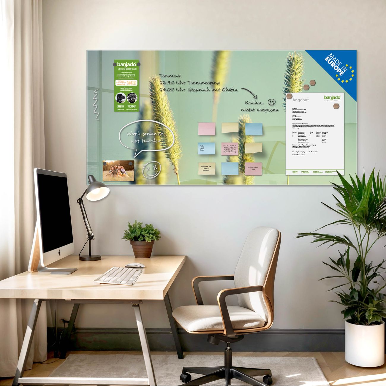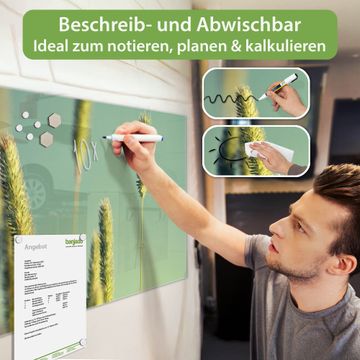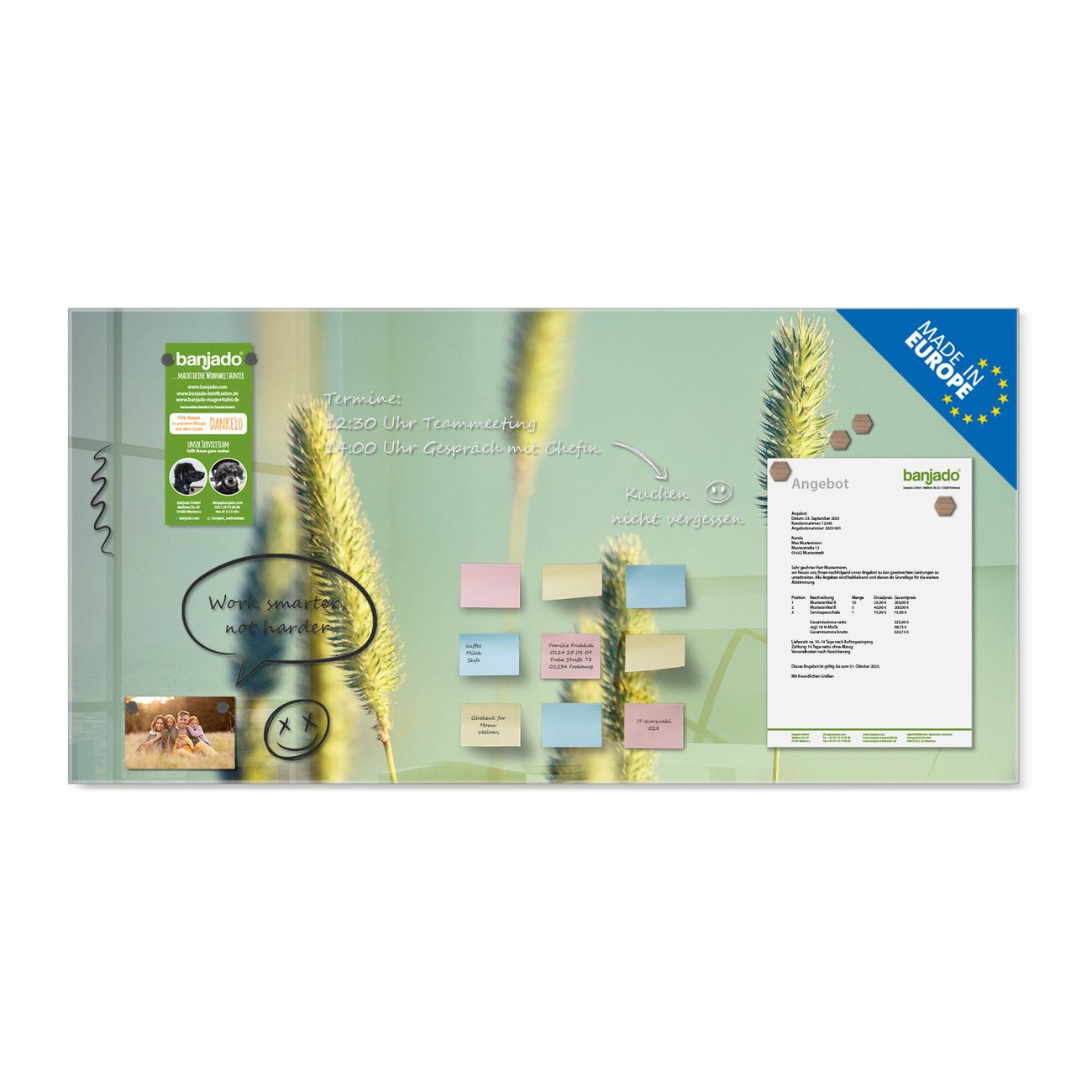 Die banjado Glas Magnettafel mit dem Motiv Motiv Ähren verbindet Funktionalität mit Stil. Sie ersetzt das Zettelchaos durch klare Strukturen und bringt dabei eine warme, natürliche Atmosphäre in Ihr Zuhause. Ob im Büro, in der Küche oder im Eingangsbereich - dieses Design-Board zieht Blicke an und sorgt für Ordnung mit Charakter.