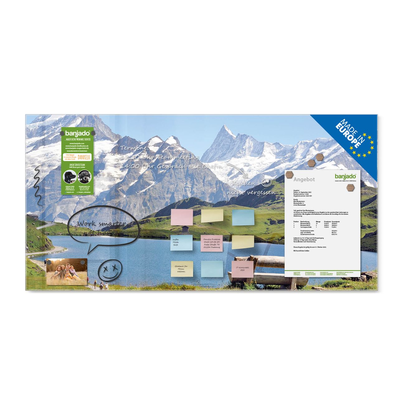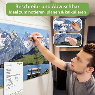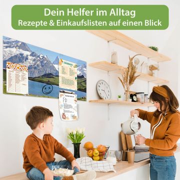 Die banjado Glas Magnettafel mit dem Motiv Motiv Alpen verbindet Funktionalität mit Stil. Sie ersetzt das Zettelchaos durch klare Strukturen und bringt dabei eine warme, natürliche Atmosphäre in Ihr Zuhause. Ob im Büro, in der Küche oder im Eingangsbereich - dieses Design-Board zieht Blicke an und sorgt für Ordnung mit Charakter.