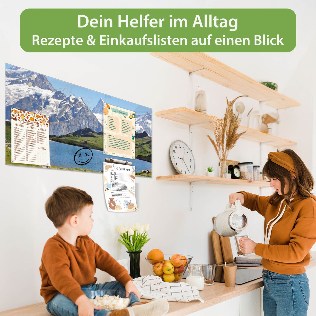 Ein Stück Design, das Ihren Alltag organisiert. Schreiben, heften, inspirieren - alles an einem Ort. Qualität, die man spürt. Montage leicht gemacht. Handwerk mit Herz - veredelt in Sachsen. Einzigartiges Design mit Motiv Motiv Alpen Beschreibbare Glasoberfläche, leicht zu reinigen Starke Magnetkraft durch Stahlrückwand Inklusive 4 Neodym-Magneten Flexible Montageoptionen Handveredelt in Sachsen - Qualität, die bleibt