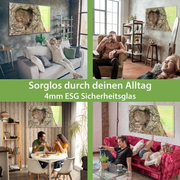 - Material: 4mm Sicherheitsglas mit Metallrückwand