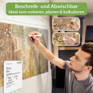 Die banjado Glas Magnettafel mit dem Motiv Motiv Alte Tapeten verbindet Funktionalität mit Stil. Sie ersetzt das Zettelchaos durch klare Strukturen und bringt dabei eine warme, natürliche Atmosphäre in Ihr Zuhause. Ob im Büro, in der Küche oder im Eingangsbereich - dieses Design-Board zieht Blicke an und sorgt für Ordnung mit Charakter.
