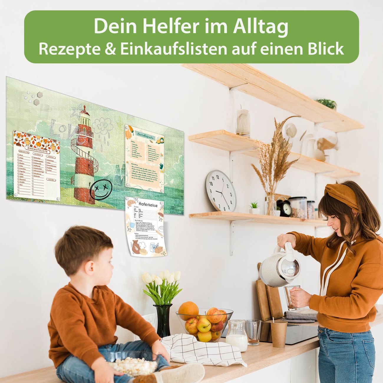 Auf der glatten Glasoberfläche lassen sich Termine, Rezepte oder Notizen ganz einfach mit Kreidestiften festhalten und rückstandslos entfernen. Starke Neodym-Magnete halten Ihre wichtigsten Erinnerungen sicher an Ort und Stelle. So entsteht Ihre ganz persönliche Ideenwand - jeden Tag neu.