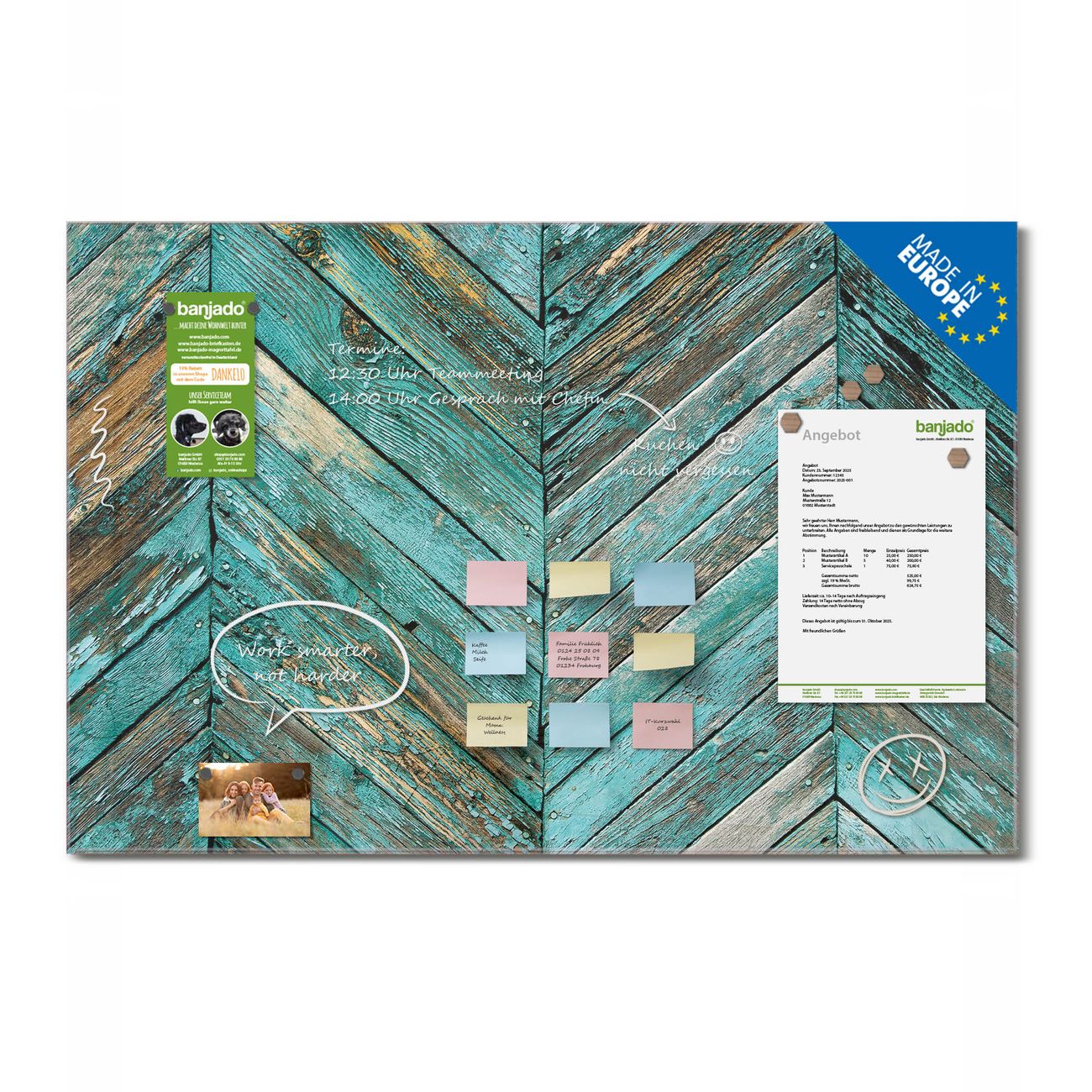 Glas Magnettafel im Querformat Motiv Altes Holz Blau