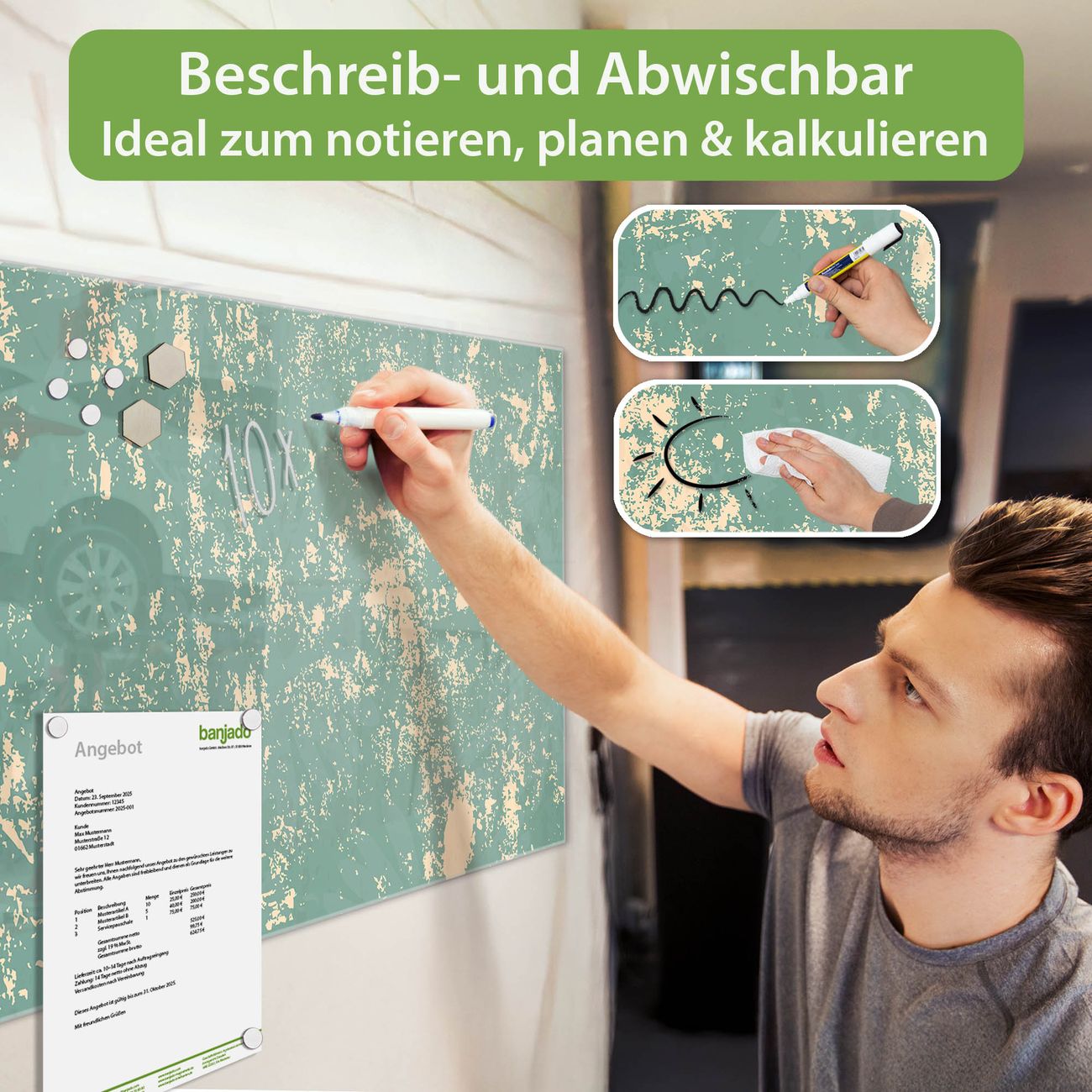 Jede Glas Magnettafel wird in unserer Werkstatt von Hand gefertigt und sorgfältig geprüft. So erhalten Sie ein echtes Qualitätsprodukt, das Funktion und Ästhetik perfekt vereint.?? Warum banjado?