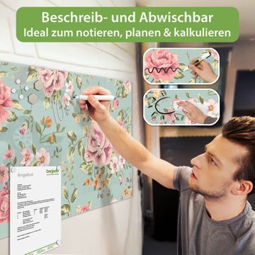 Die banjado Glas Magnettafel mit dem Motiv Motiv Altrosa Blume verbindet Funktionalität mit Stil. Sie ersetzt das Zettelchaos durch klare Strukturen und bringt dabei eine warme, natürliche Atmosphäre in Ihr Zuhause. Ob im Büro, in der Küche oder im Eingangsbereich - dieses Design-Board zieht Blicke an und sorgt für Ordnung mit Charakter.