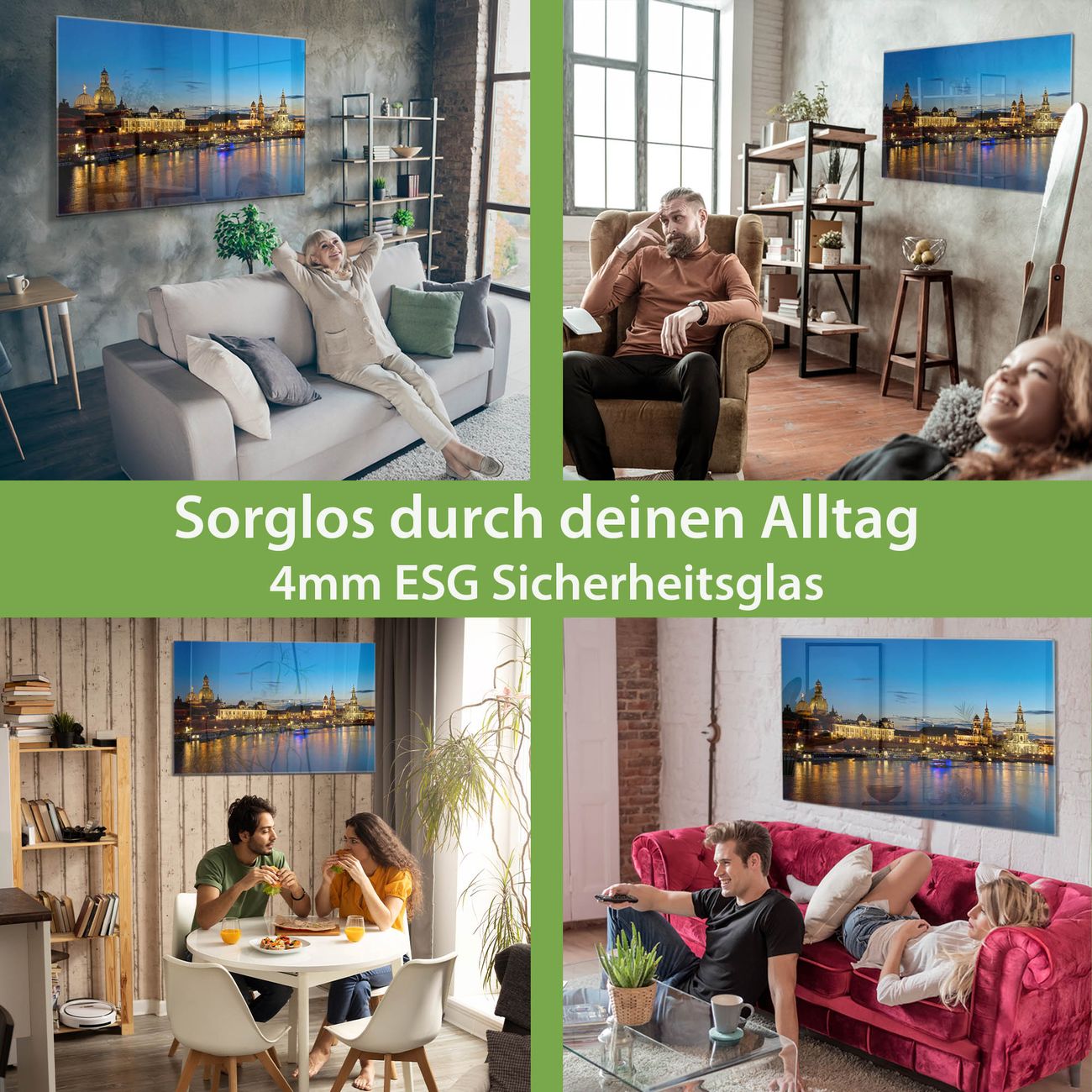 - Material: 4mm Sicherheitsglas mit Metallrückwand
