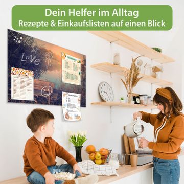 Auf der glatten Glasoberfläche lassen sich Termine, Rezepte oder Notizen ganz einfach mit Kreidestiften festhalten und rückstandslos entfernen. Starke Neodym-Magnete halten Ihre wichtigsten Erinnerungen sicher an Ort und Stelle. So entsteht Ihre ganz persönliche Ideenwand - jeden Tag neu.