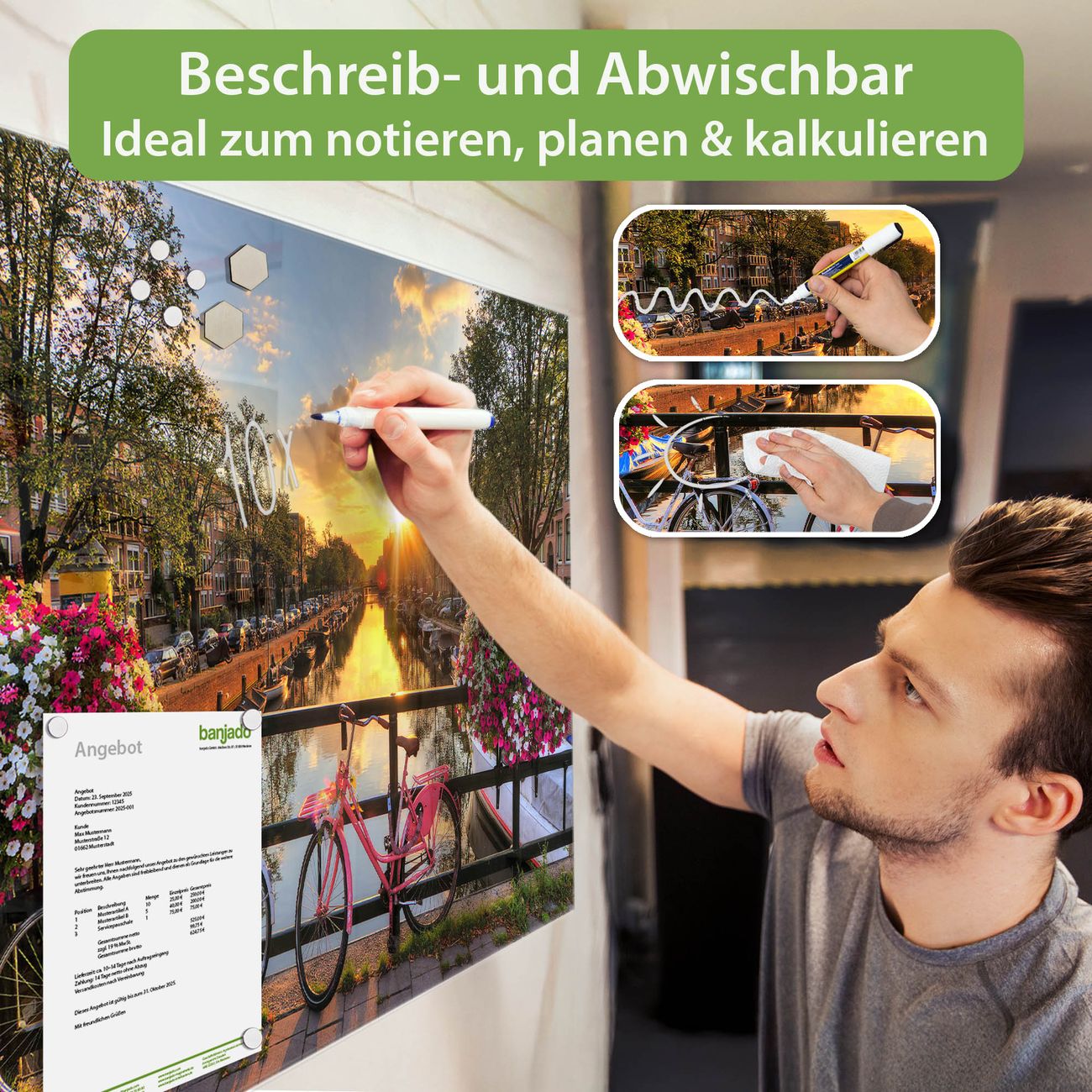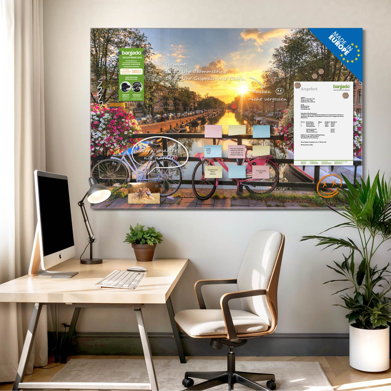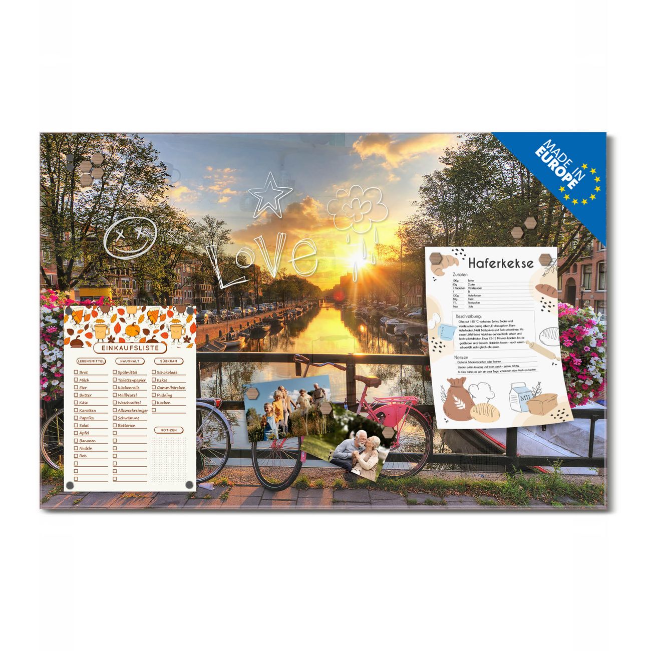 Glas Magnettafel im Querformat Motiv Amsterdam Mit Rad