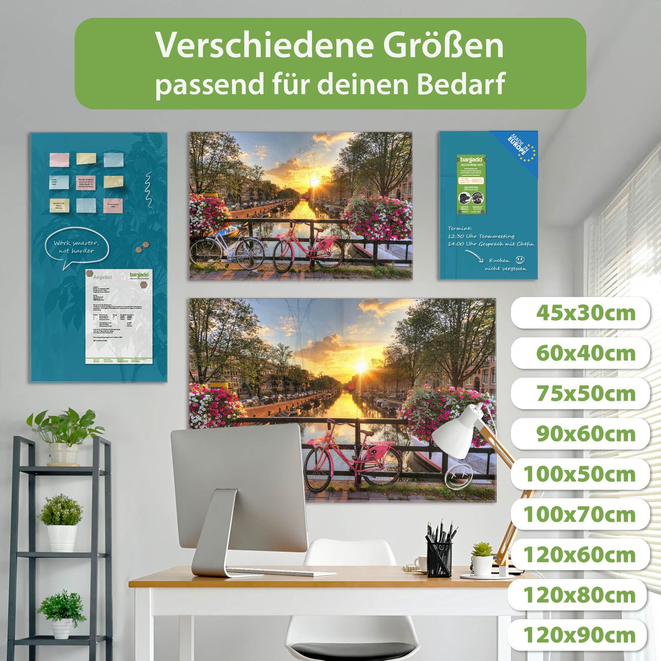 Die banjado Glas Magnettafel mit dem Motiv Motiv Amsterdam Mit Rad verbindet Funktionalität mit Stil. Sie ersetzt das Zettelchaos durch klare Strukturen und bringt dabei eine warme, natürliche Atmosphäre in Ihr Zuhause. Ob im Büro, in der Küche oder im Eingangsbereich - dieses Design-Board zieht Blicke an und sorgt für Ordnung mit Charakter.