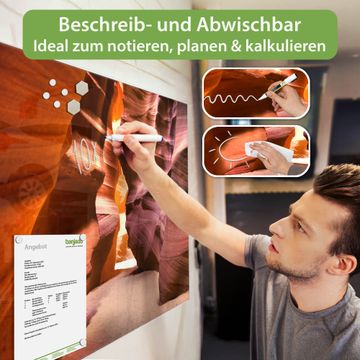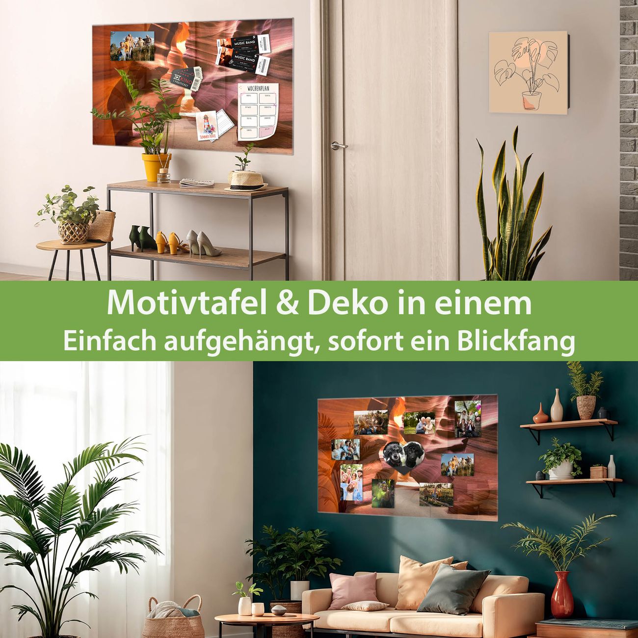 Die banjado Glas Magnettafel mit dem Motiv Motiv Antelope Canyon verbindet Funktionalität mit Stil. Sie ersetzt das Zettelchaos durch klare Strukturen und bringt dabei eine warme, natürliche Atmosphäre in Ihr Zuhause. Ob im Büro, in der Küche oder im Eingangsbereich - dieses Design-Board zieht Blicke an und sorgt für Ordnung mit Charakter.
