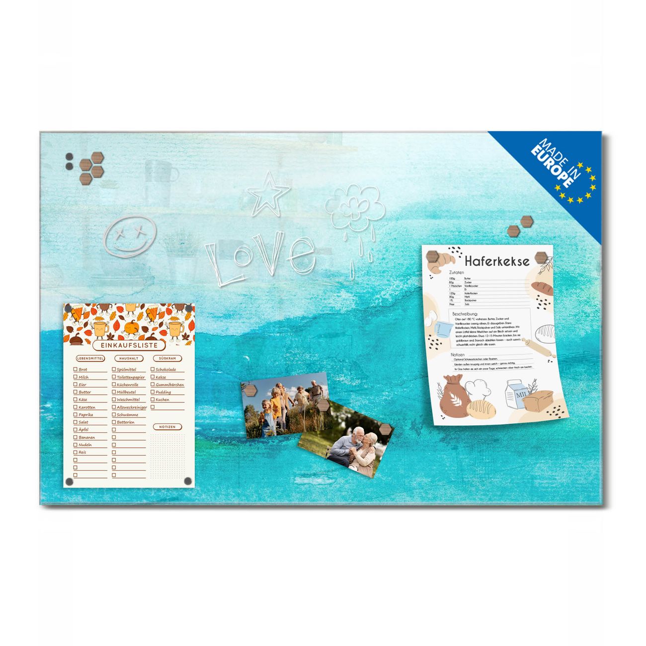 Ein Stück Design, das Ihren Alltag organisiert. Schreiben, heften, inspirieren - alles an einem Ort. Qualität, die man spürt. Montage leicht gemacht. Handwerk mit Herz - veredelt in Sachsen. Einzigartiges Design mit Motiv Motiv Aquarell Blau Beschreibbare Glasoberfläche, leicht zu reinigen Starke Magnetkraft durch Stahlrückwand Inklusive 4 Neodym-Magneten Flexible Montageoptionen Handveredelt in Sachsen - Qualität, die bleibt