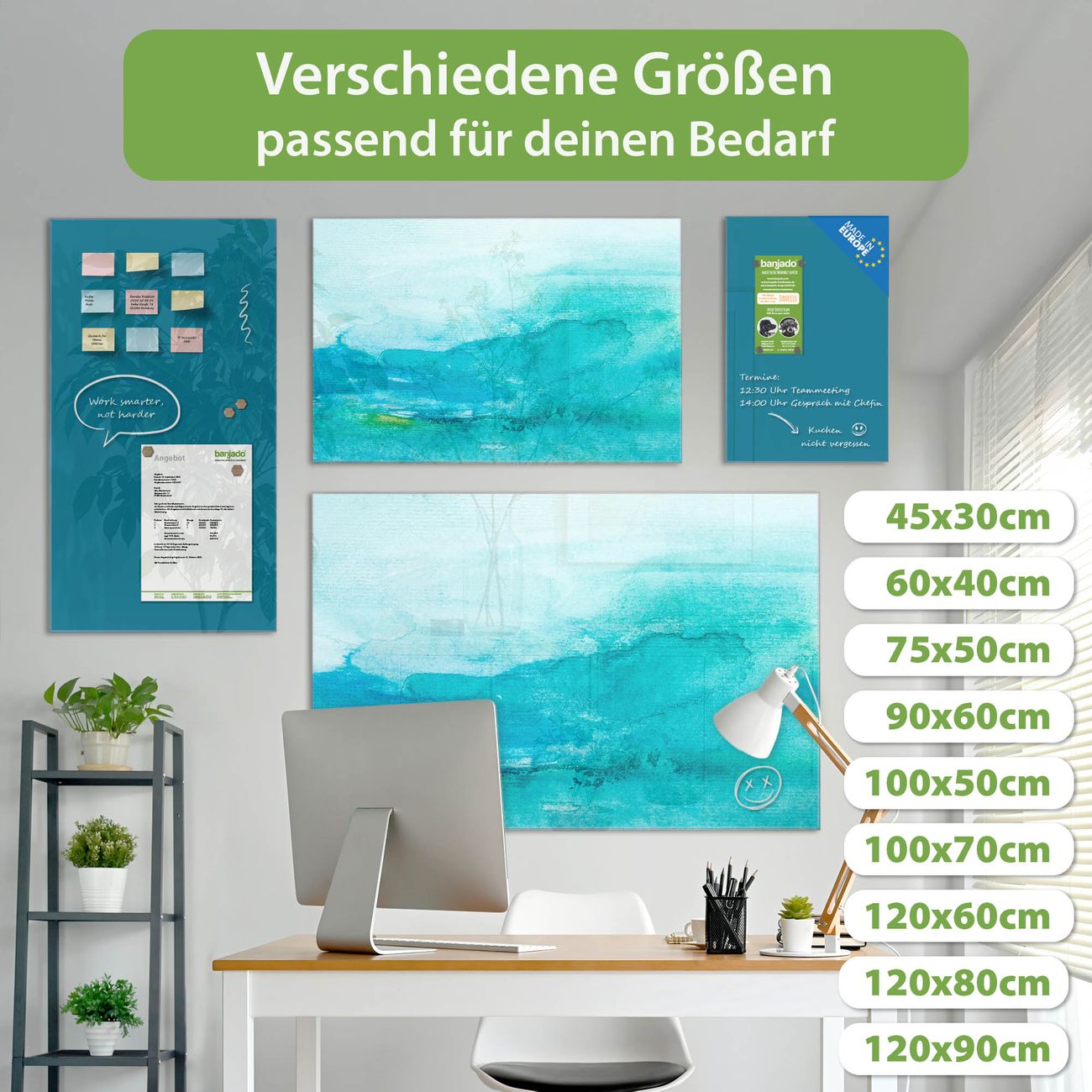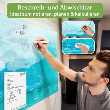 Die banjado Glas Magnettafel mit dem Motiv Motiv Aquarell Blau verbindet Funktionalität mit Stil. Sie ersetzt das Zettelchaos durch klare Strukturen und bringt dabei eine warme, natürliche Atmosphäre in Ihr Zuhause. Ob im Büro, in der Küche oder im Eingangsbereich - dieses Design-Board zieht Blicke an und sorgt für Ordnung mit Charakter.