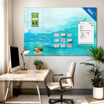 Glas Magnettafel im Querformat Motiv Aquarell Blau